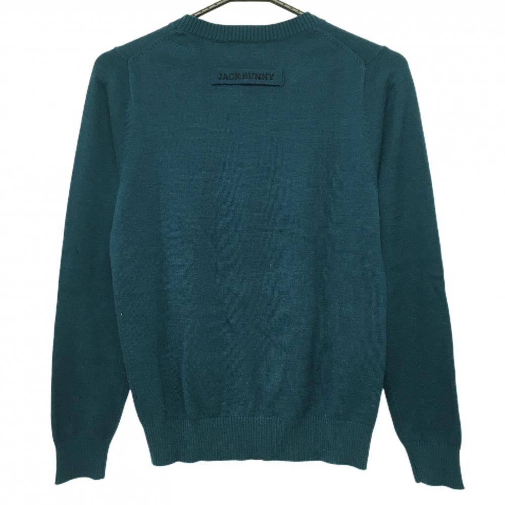 【美品】ジャックバニー セーター ブルー系×黒 ニット ウール混 レディース 1(M) ゴルフウェア Jack Bunny