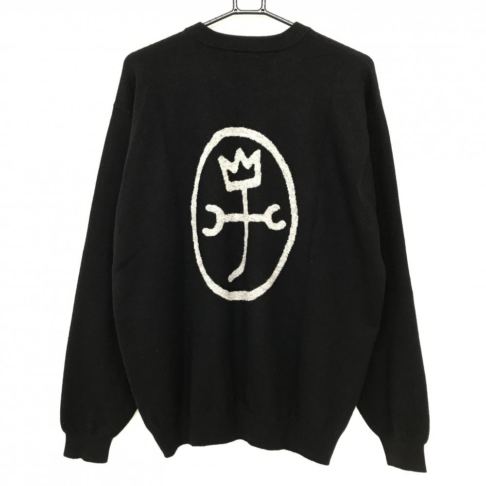 【超美品】カステルバジャック セーター 黒×グレー カシミヤ100% 背面ビッグロゴ メンズ 4(XL) ゴルフウェア CASTELBAJAC