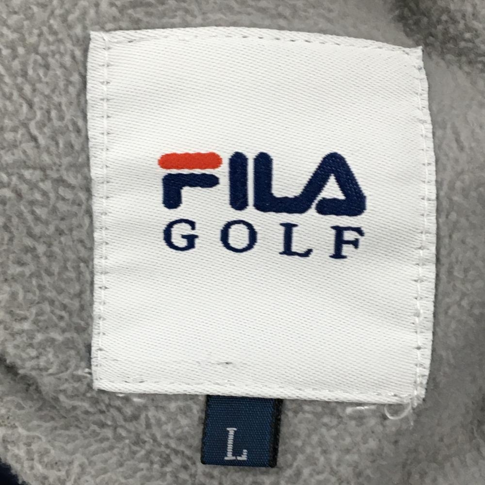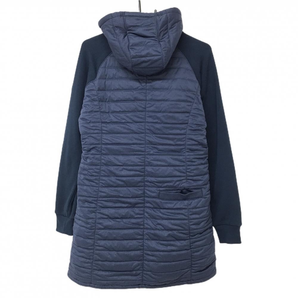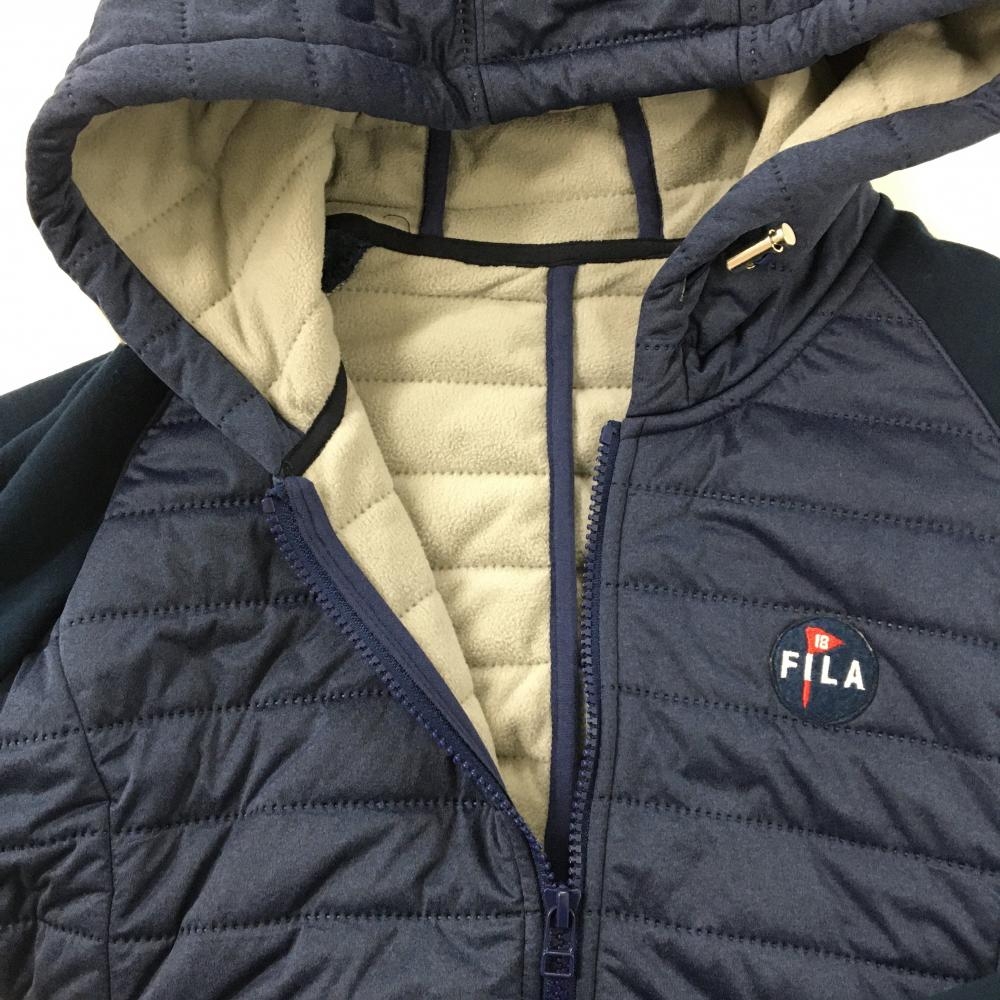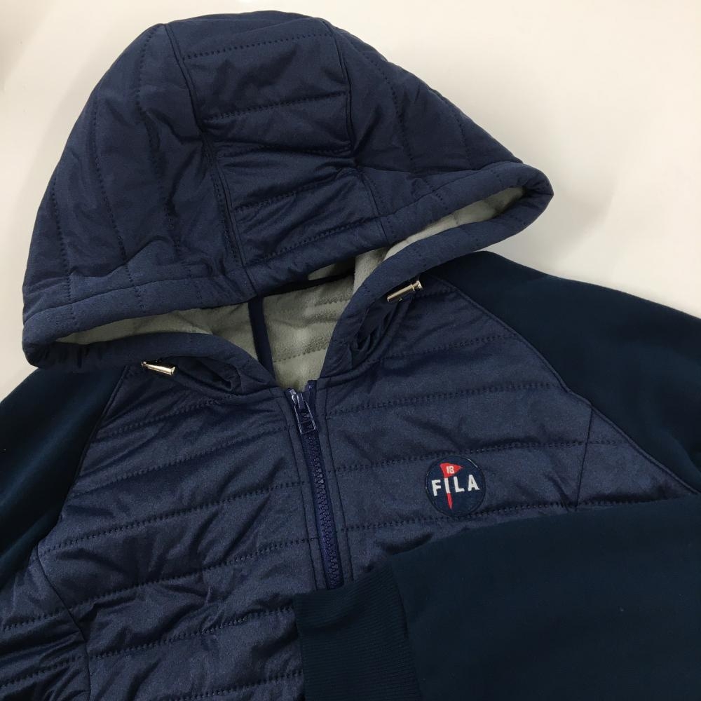 【美品】フィラゴルフ フード付中綿ワンピース ネイビー 袖異素材切替 裏起毛 レディース L ゴルフウェア FILA GOLF