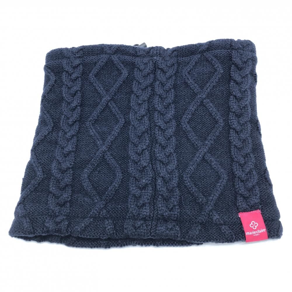【新品】マリクレール ネックウォーマー ネイビー ケーブル編み 内側フリース レディース F ゴルフウェア marie claire