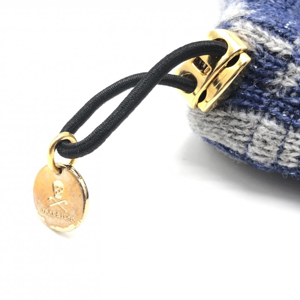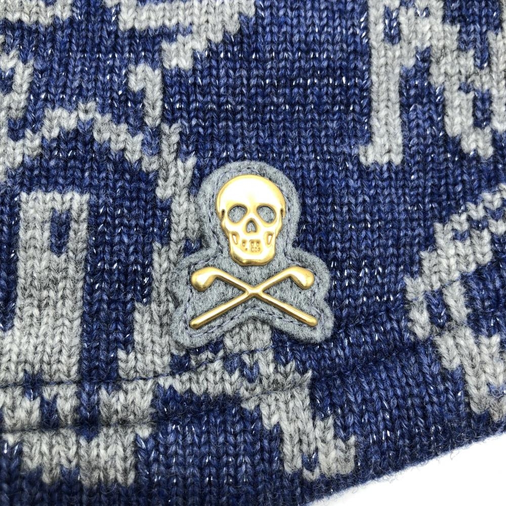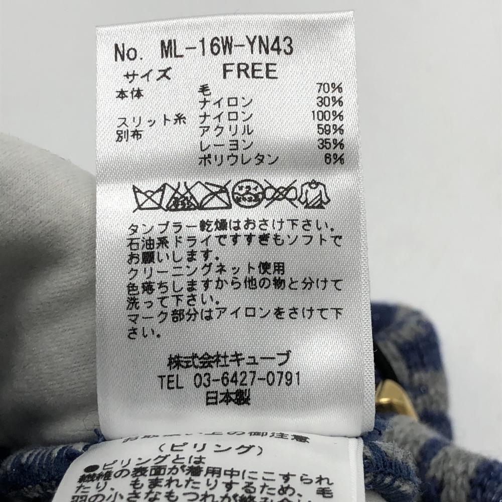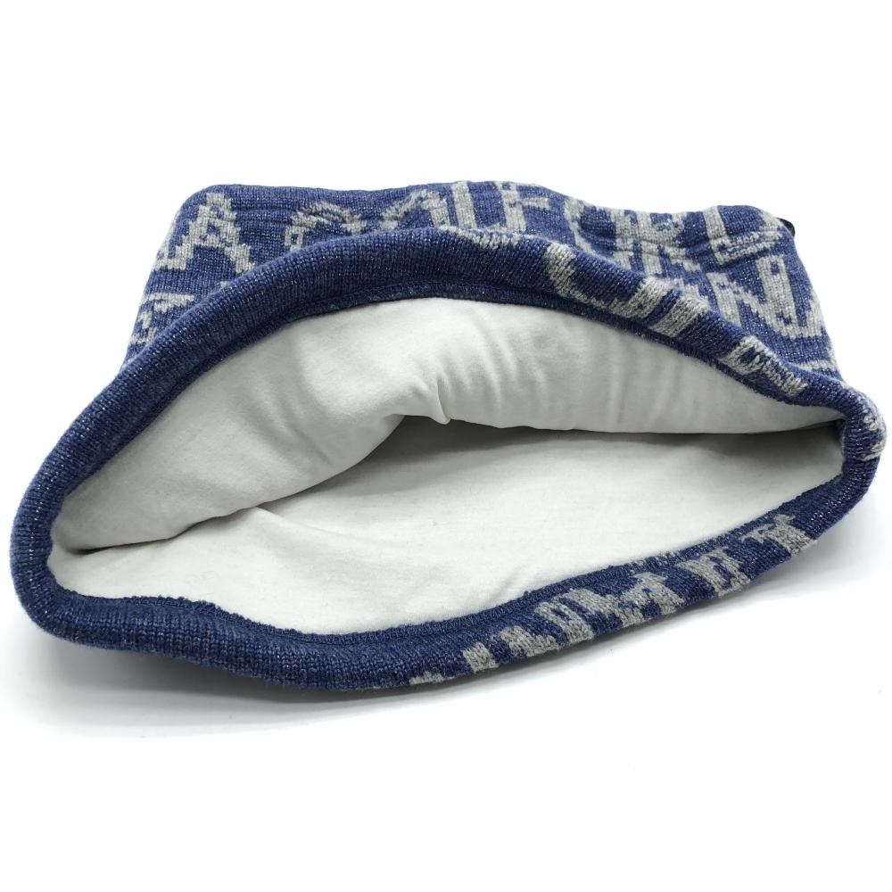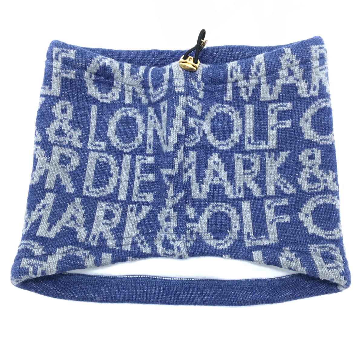 【超美品】マークアンドロナ ニットネックウォーマー ブルー×グレー ロゴ総柄 ウール混 ラメ レディース FREE ゴルフウェア MARK&LONA