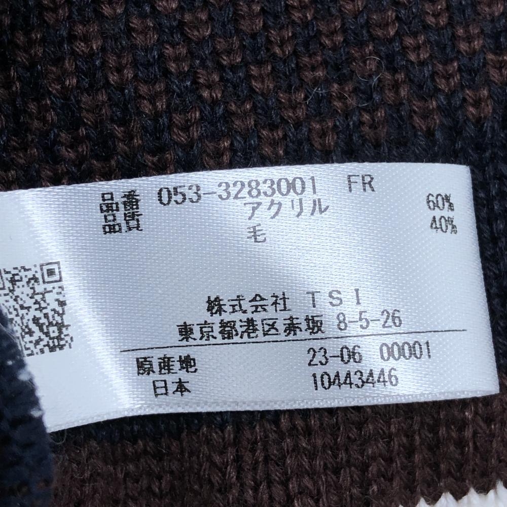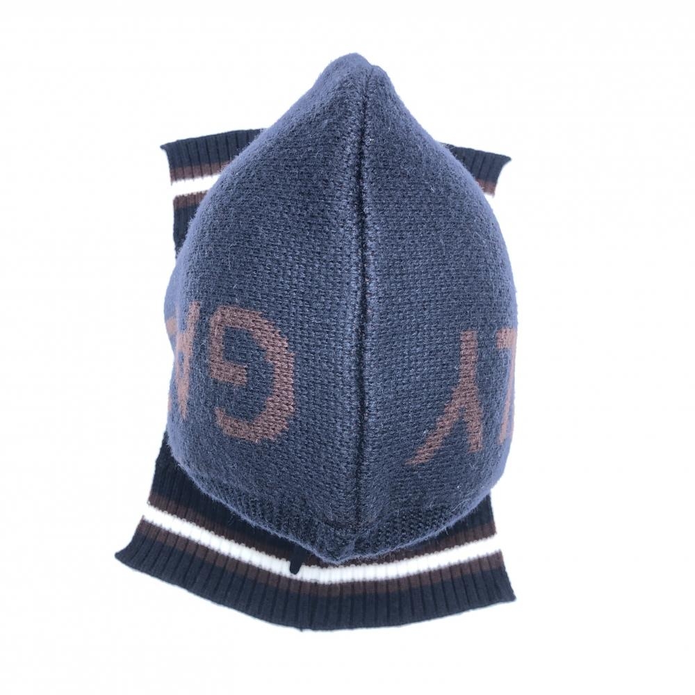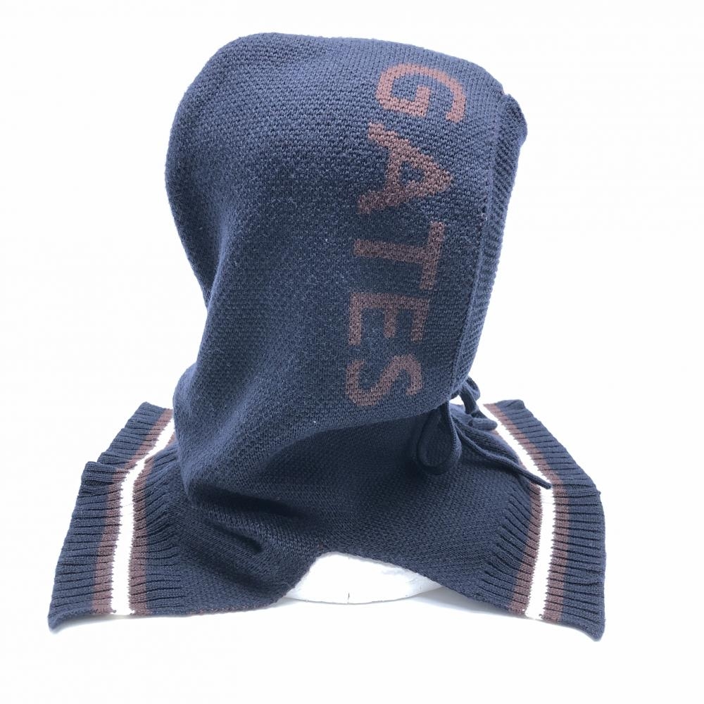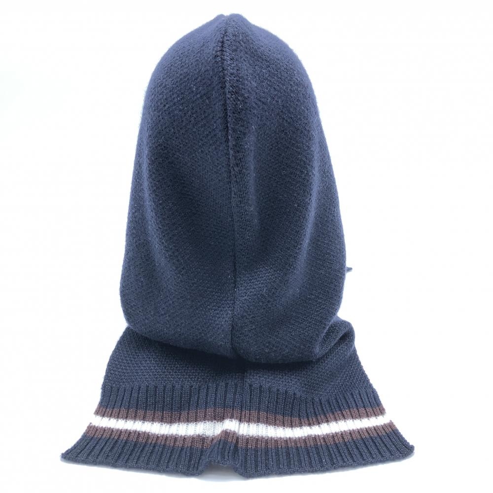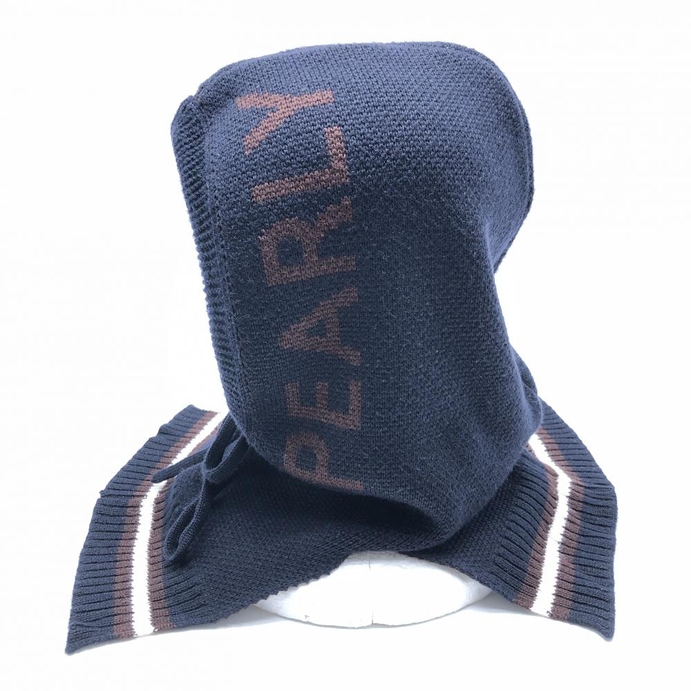 【超美品】パーリーゲイツ フード付ネックウォーマー ネイビー×ブラウン ウール混 FR ゴルフウェア 2023年モデル PEARLY GATES