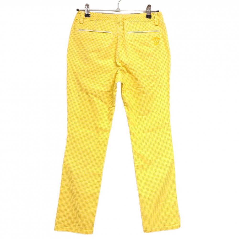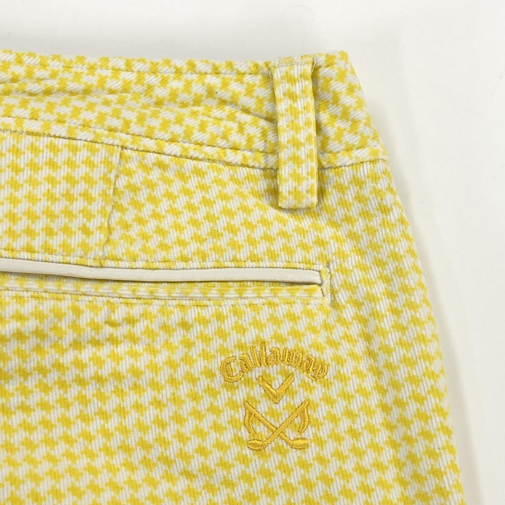 【美品】キャロウェイ コーデュロイパンツ 白×イエロー 総柄 バックロゴ レディース M ゴルフウェア Callaway