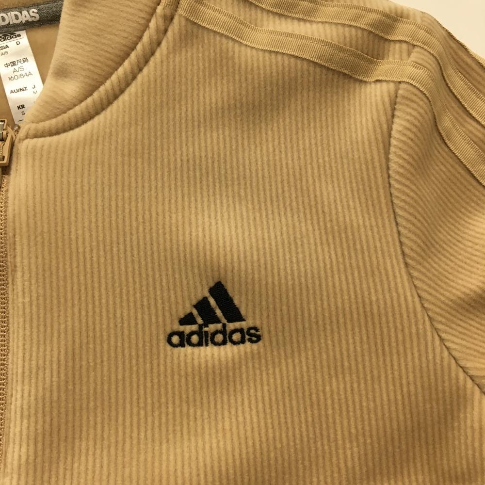 【超美品】アディダス ジャケット ベージュ コーデュロイ 裏起毛 3ライン レディース M ゴルフウェア adidas