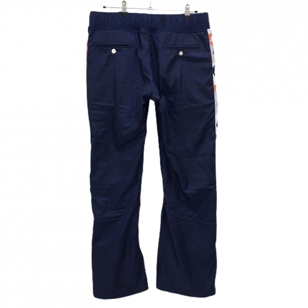 【美品】マークアンドロナ パンツ ネイビー×白×オレンジ 裏起毛 サイドカモフラ・スカル メンズ XL ゴルフウェア MARK&LONA