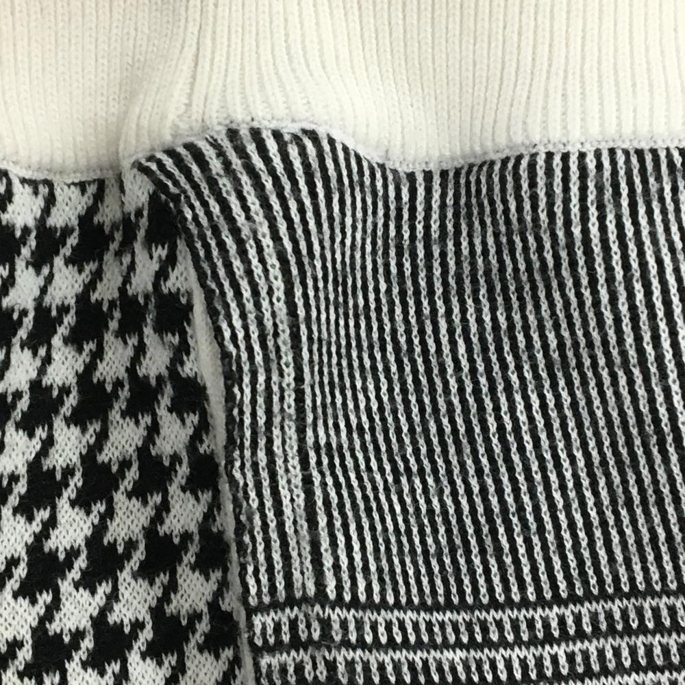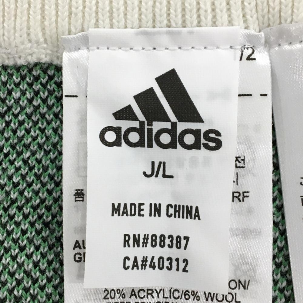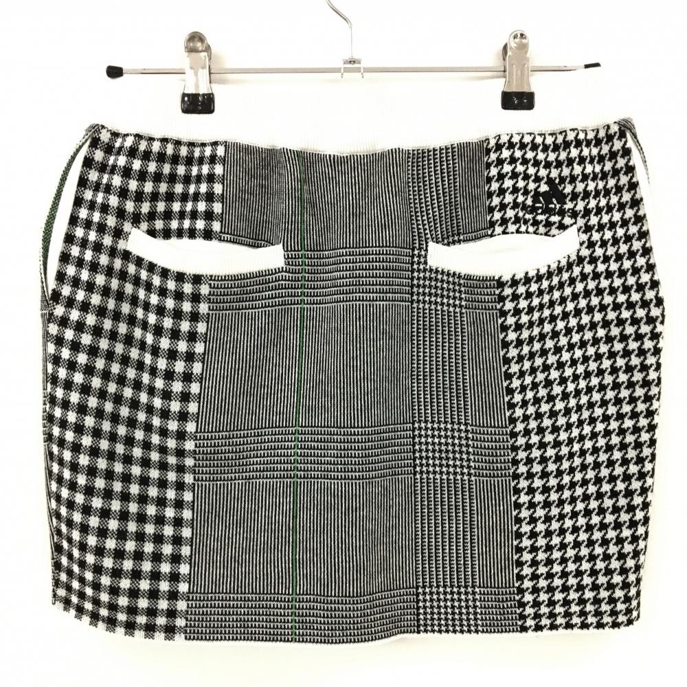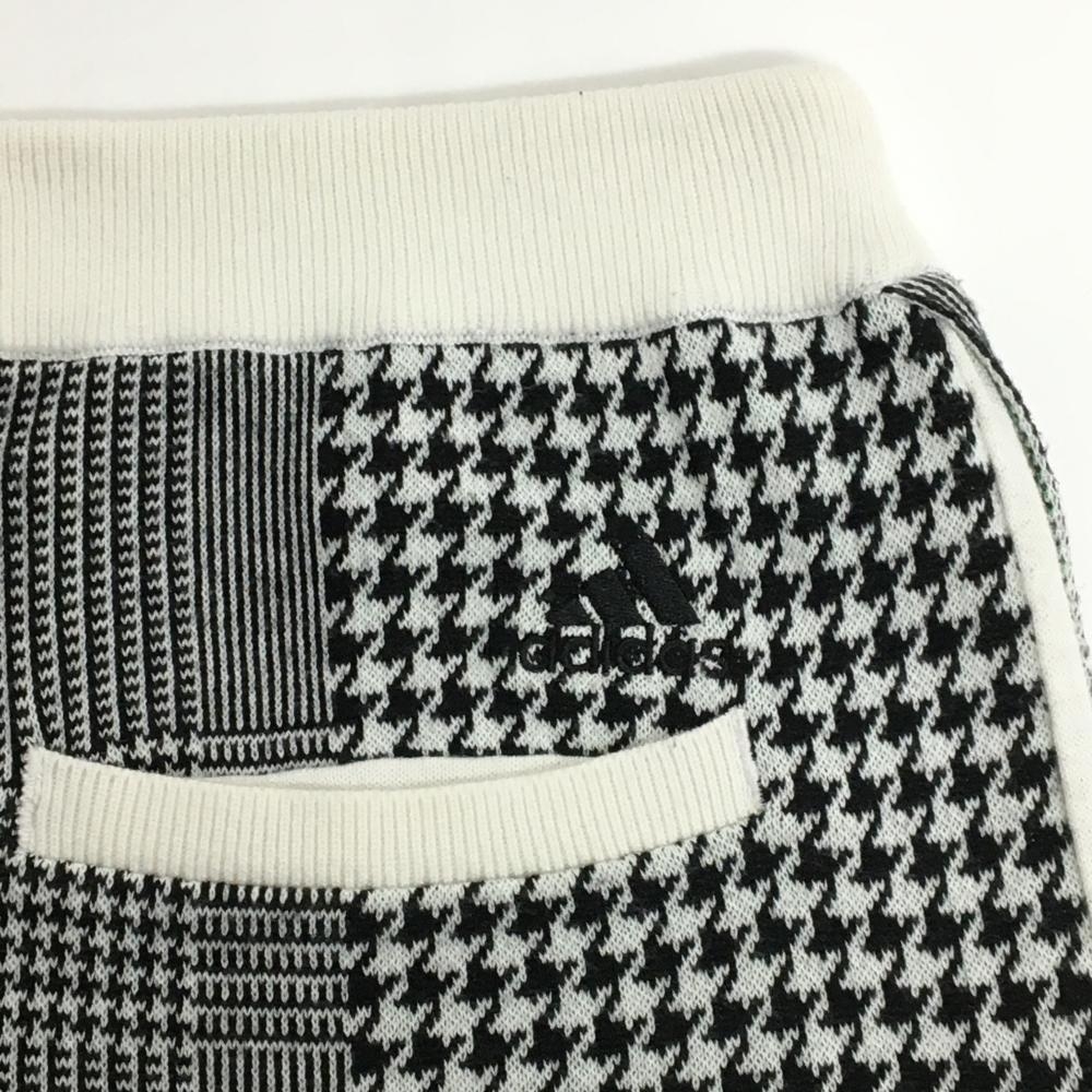 【美品】アディダス ニットスカート 白×黒 一部千鳥柄 ストライプ ウール混 ウエストゴム レディース J/L ゴルフウェア adidas