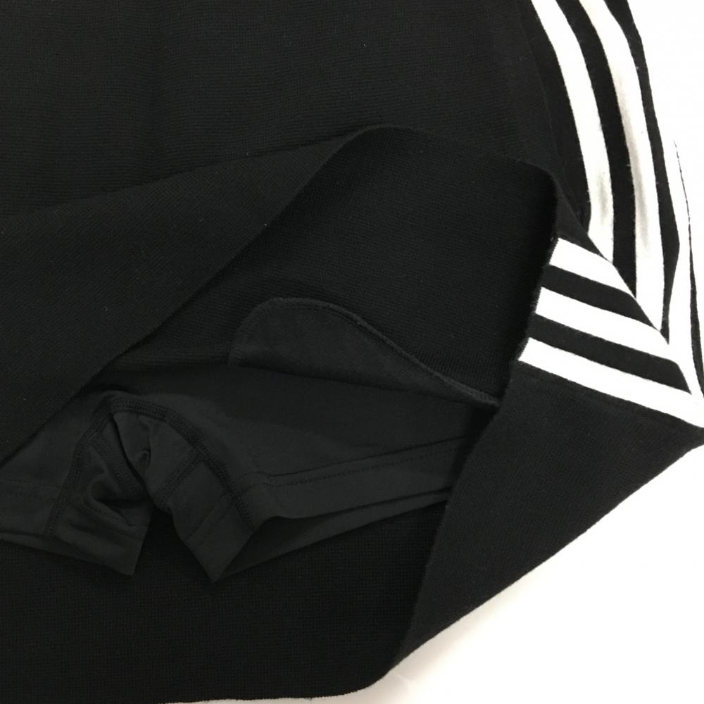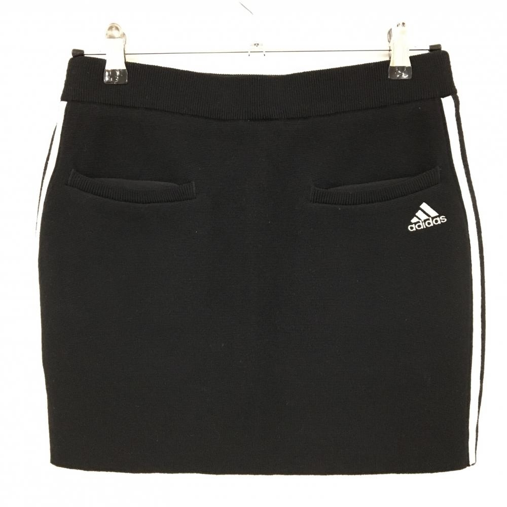 【美品】アディダス ニットスカート 黒×白 サイド3ライン バックロゴ 内側インナーパンツ レディース L ゴルフウェア adidas