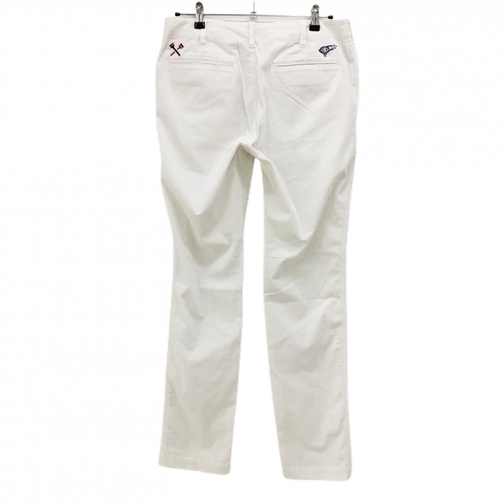 【美品】ビームスゴルフ コーデュロイパンツ 白×レッド ストレッチ ロゴ刺しゅう メンズ L ゴルフウェア BEAMS GOLF