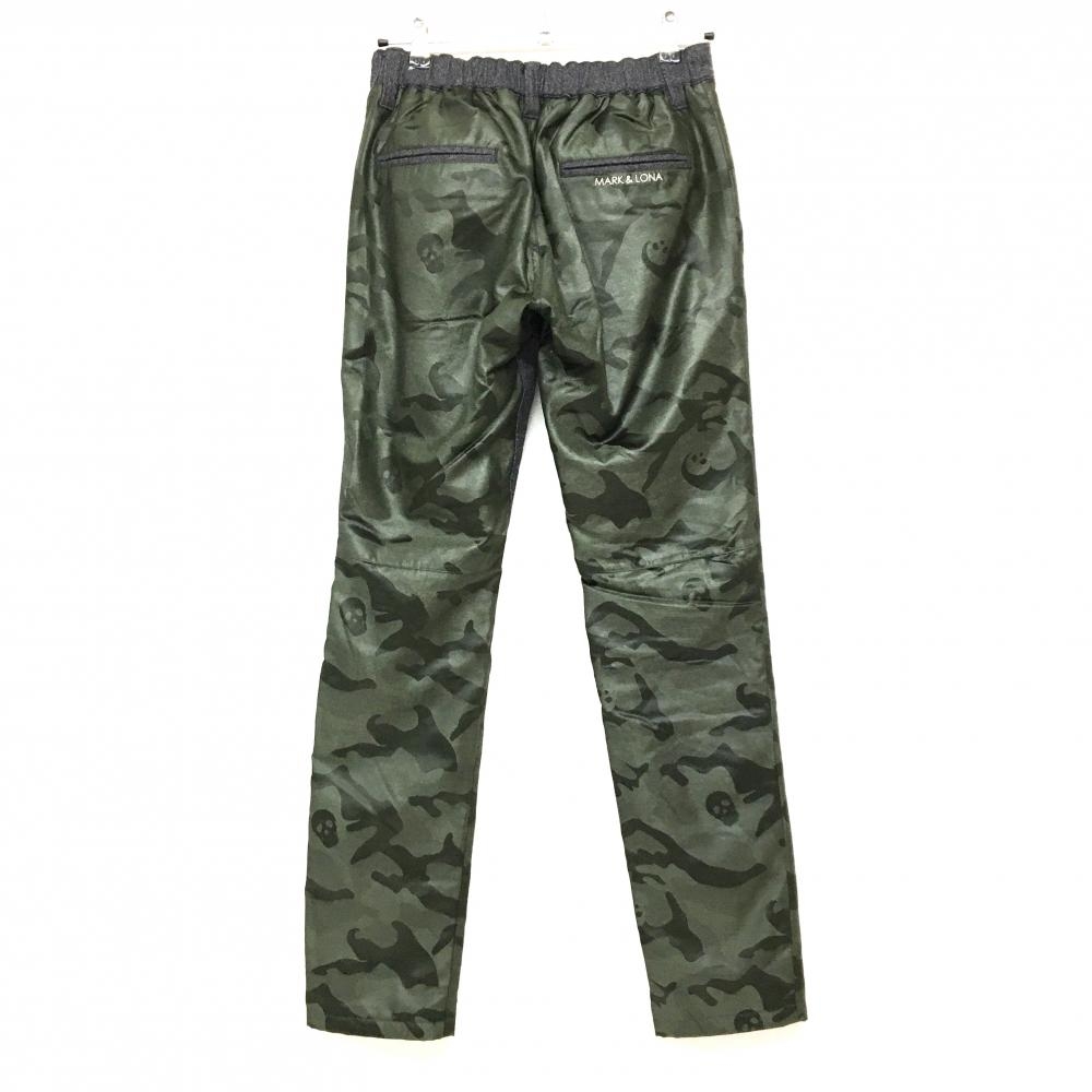 【超美品】マークアンドロナ 中綿パンツ ダークグリーン×グレー系 迷彩 カモフラ スカル メンズ S ゴルフウェア MARK&LONA