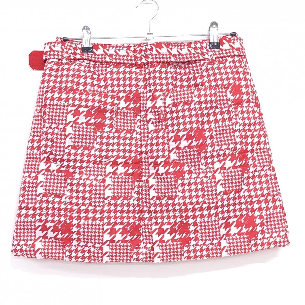 【美品】フィラゴルフ 中綿スカート 白×レッド 千鳥柄 ベルト付き レディース サイズ表記なし ゴルフウェア FILA GOLF