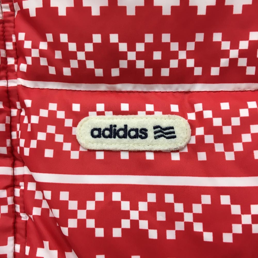 アディダス ダウンベスト レッド×白 総柄 ロゴワッペン レディース M/M ゴルフウェア adidas