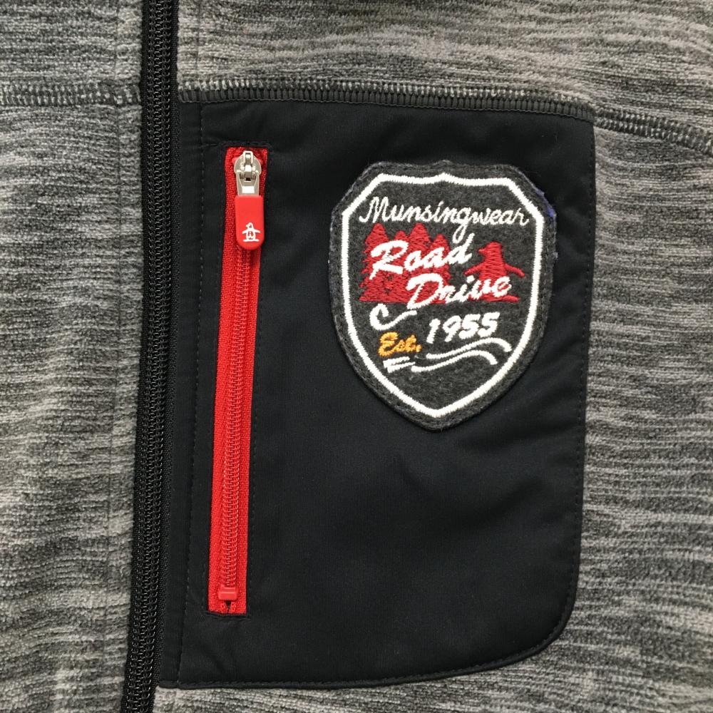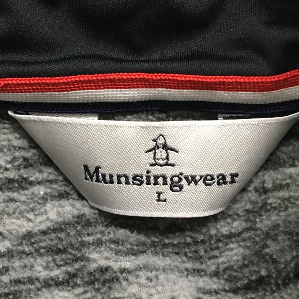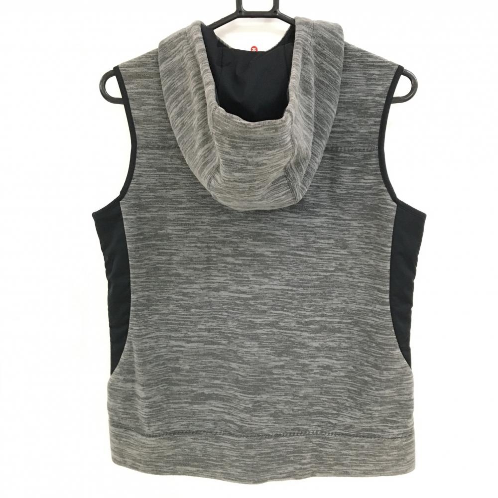 【超美品】マンシングウェア フード付きベスト 杢グレー×黒 フリース ロゴワッペン レディース L ゴルフウェア Munsingwear