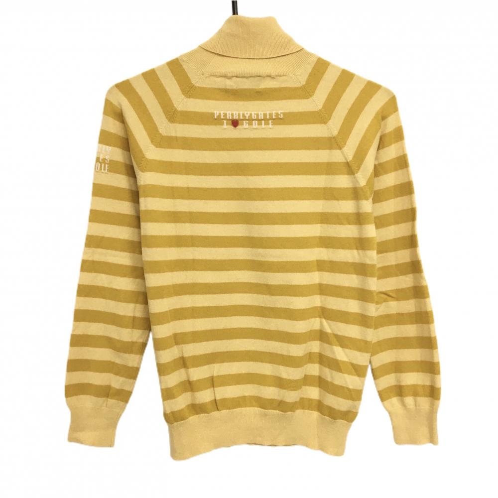 パーリーゲイツ タートルネックセーター イエロー ボーダー コットン混 ニット レディース 1(M) ゴルフウェア PEARLY GATES