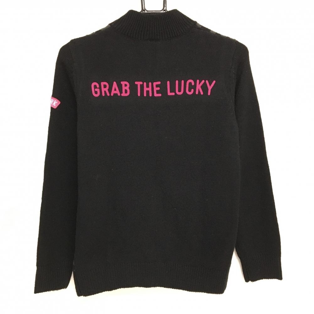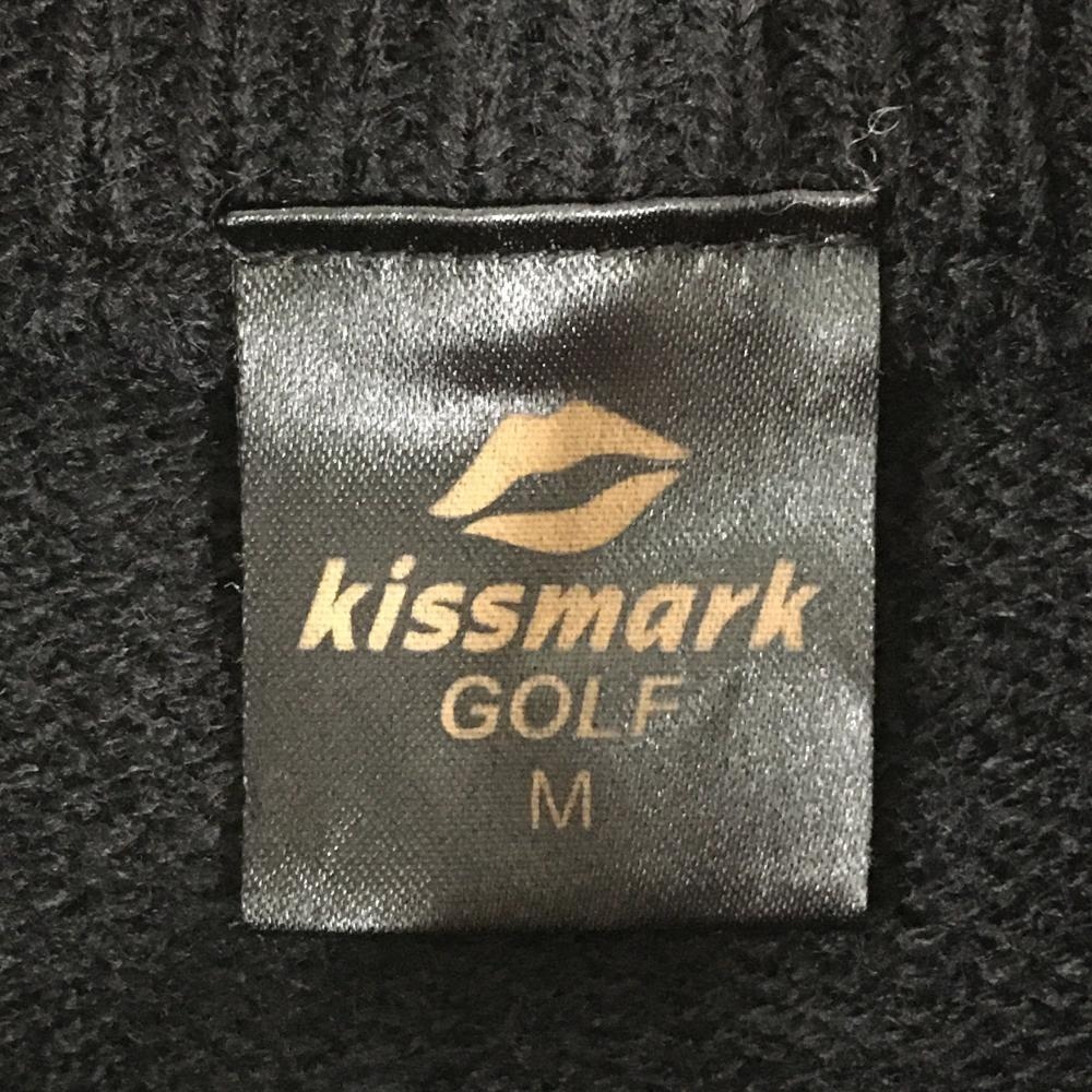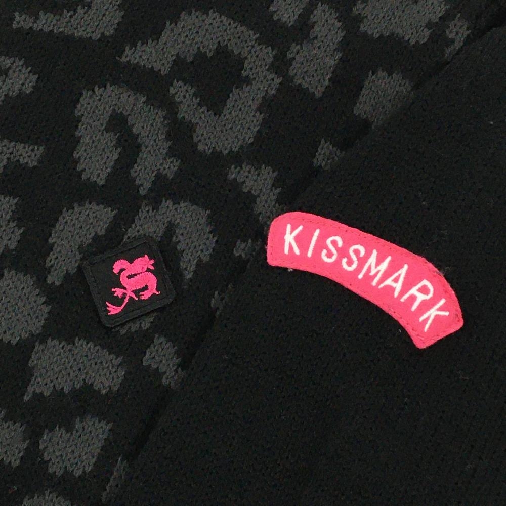 【美品】キスマークゴルフ ニットジャケット 黒×グレー 前面アニマル調 レディース M ゴルフウェア KISS MARK GOLF
