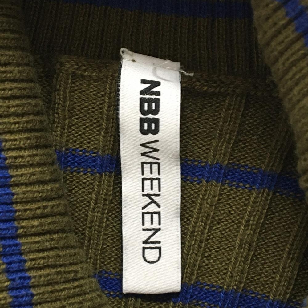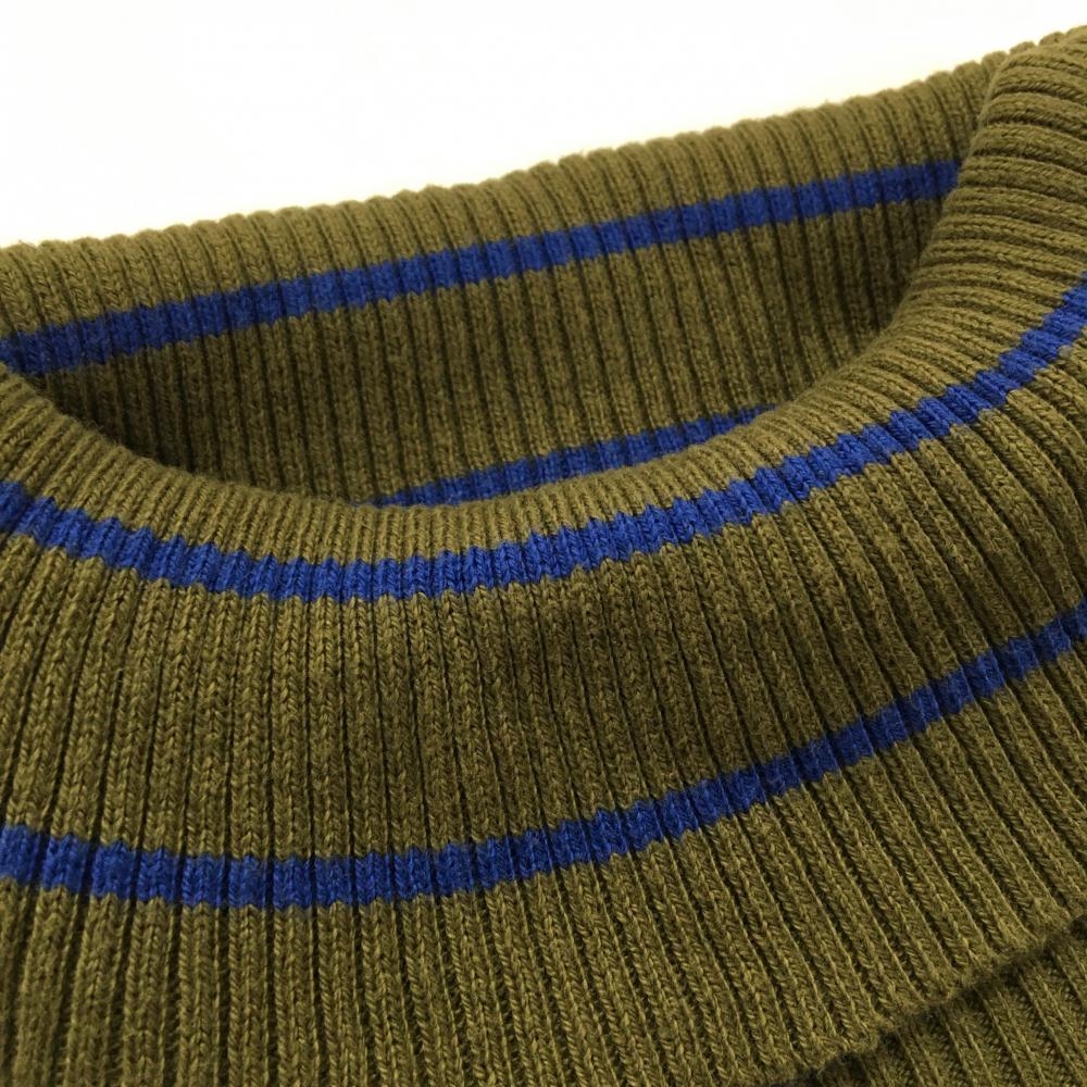 【美品】エヌビービーウィークエンド タートルネックセーター カーキ×ブルー ボーダー レディース 1 ゴルフウェア NBB WEEKEND