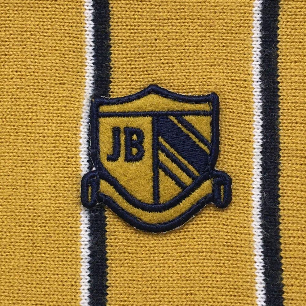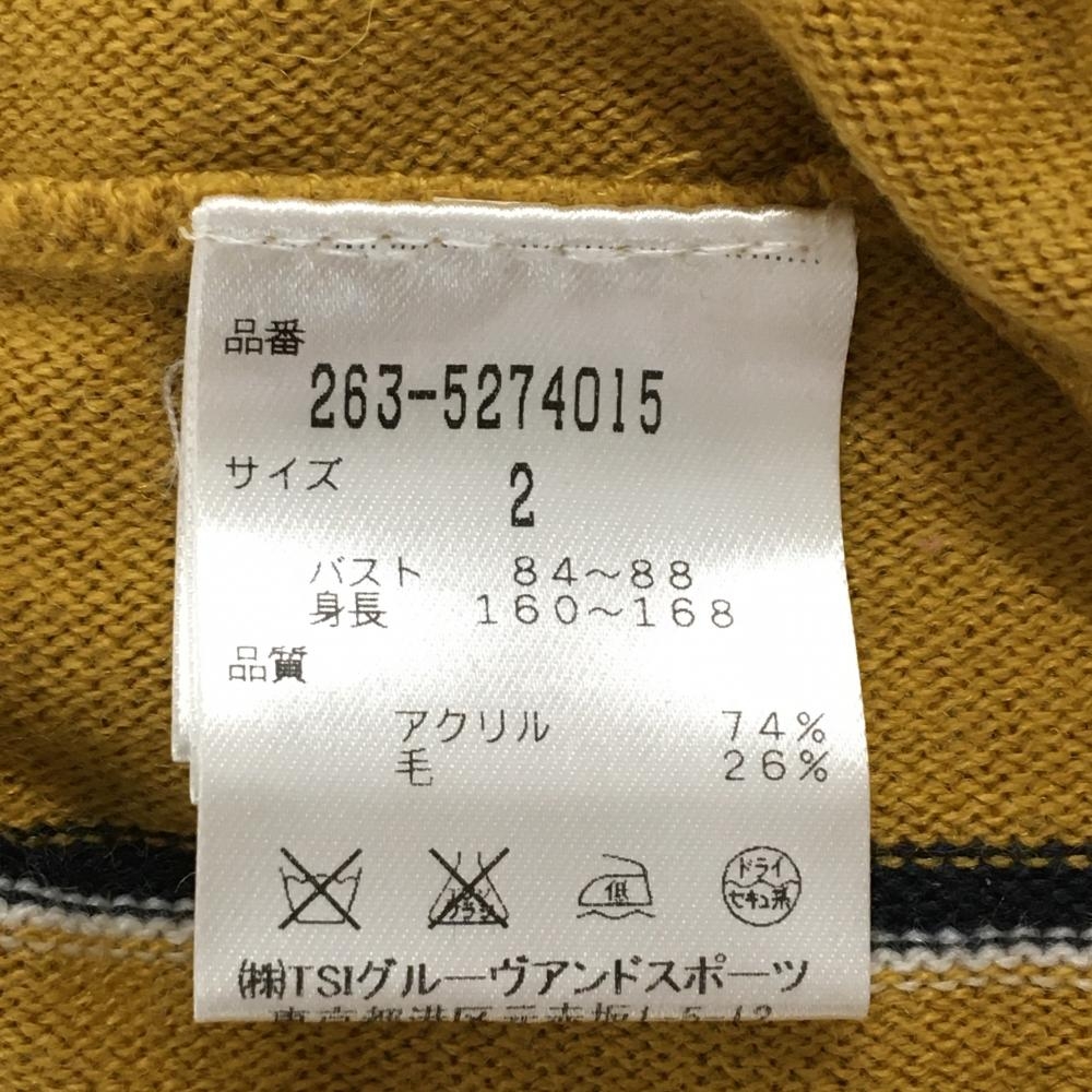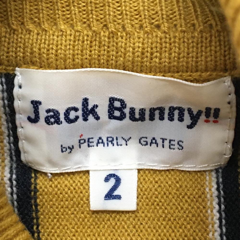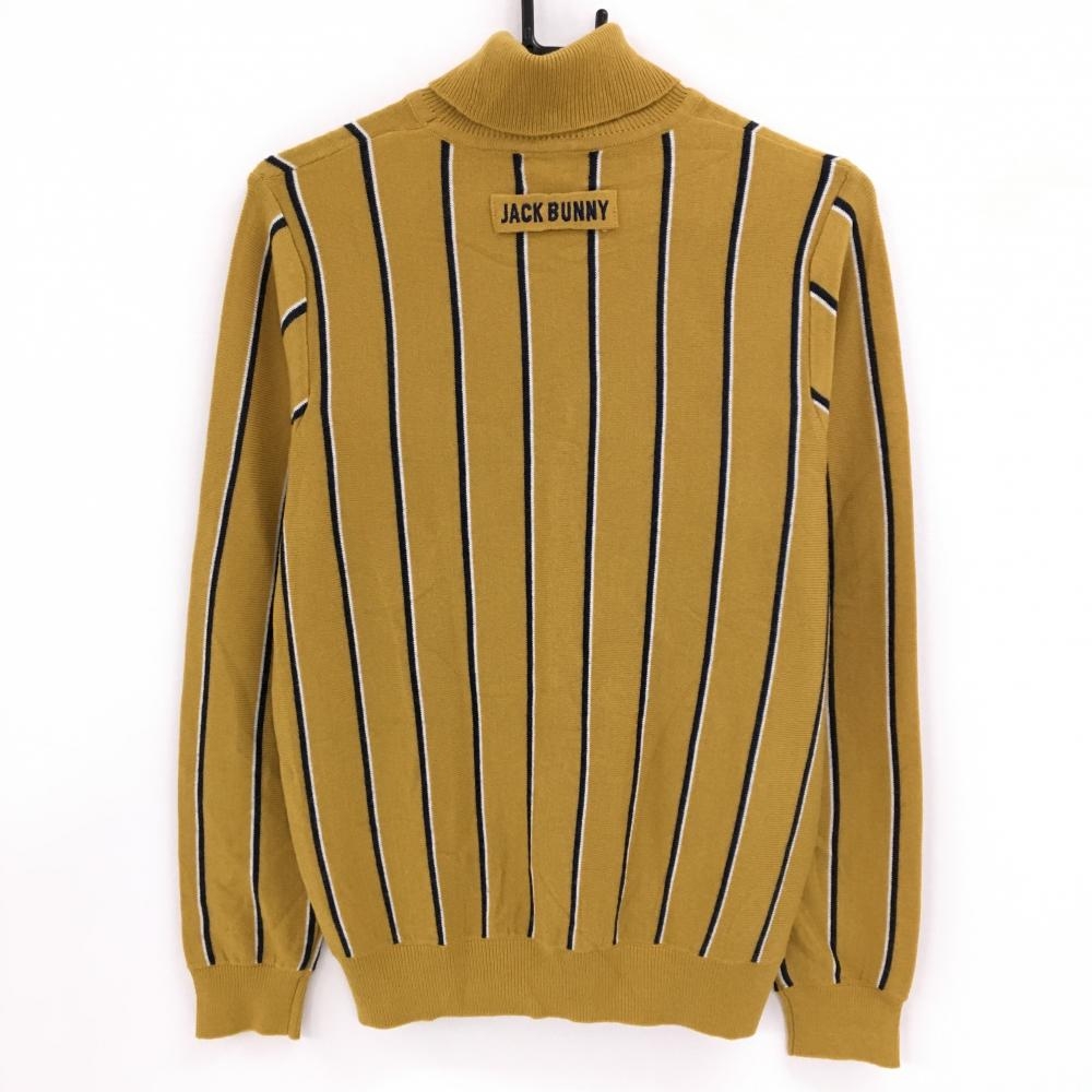 【超美品】ジャックバニー タートルネックセーター イエロー系×ネイビー ストライプ レディース 2(L) ゴルフウェア Jack Bunny
