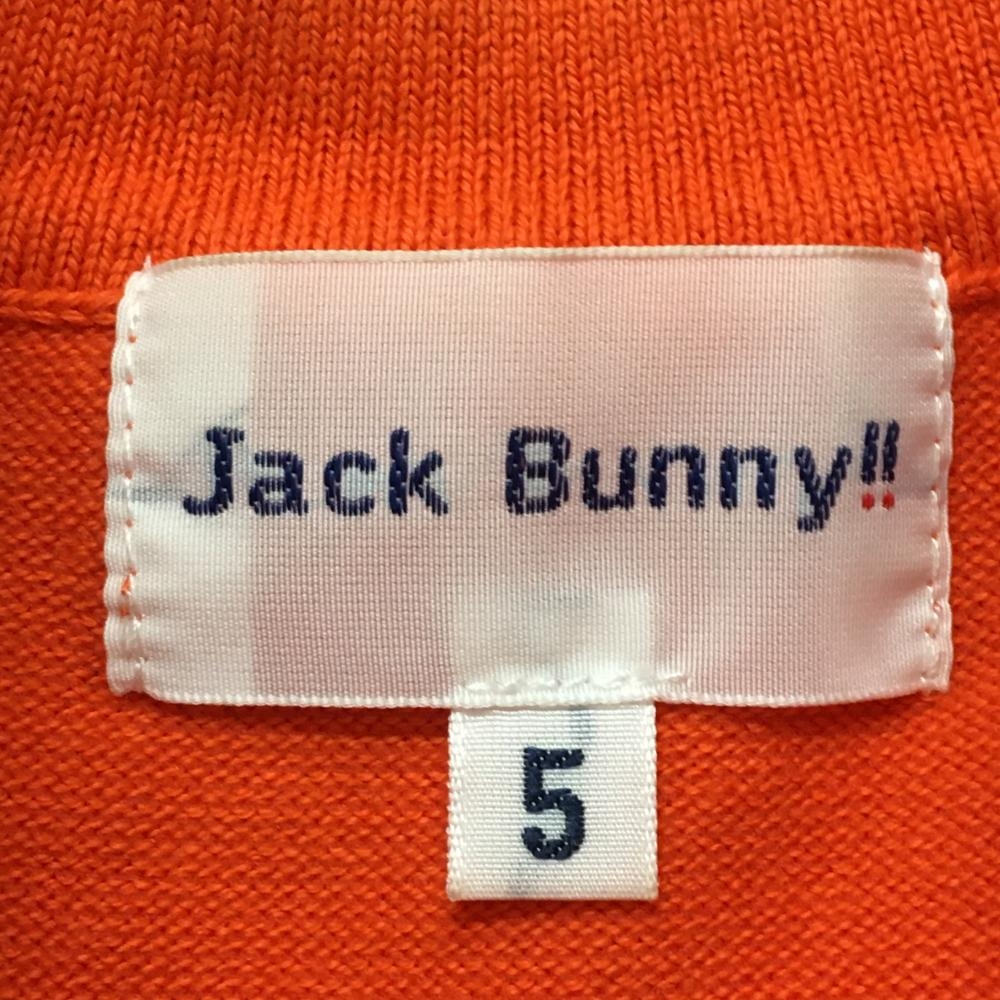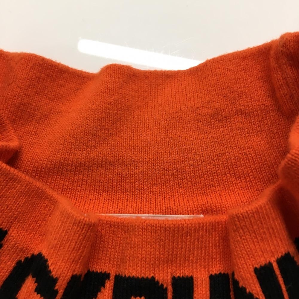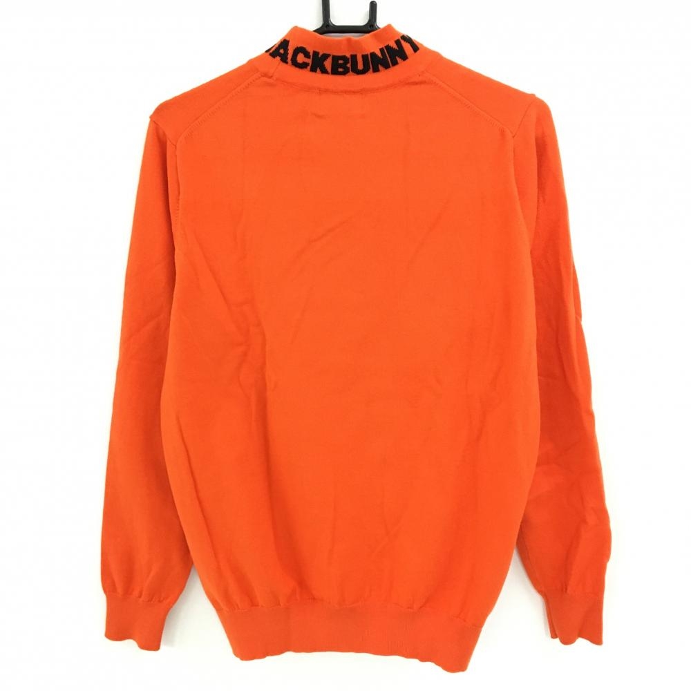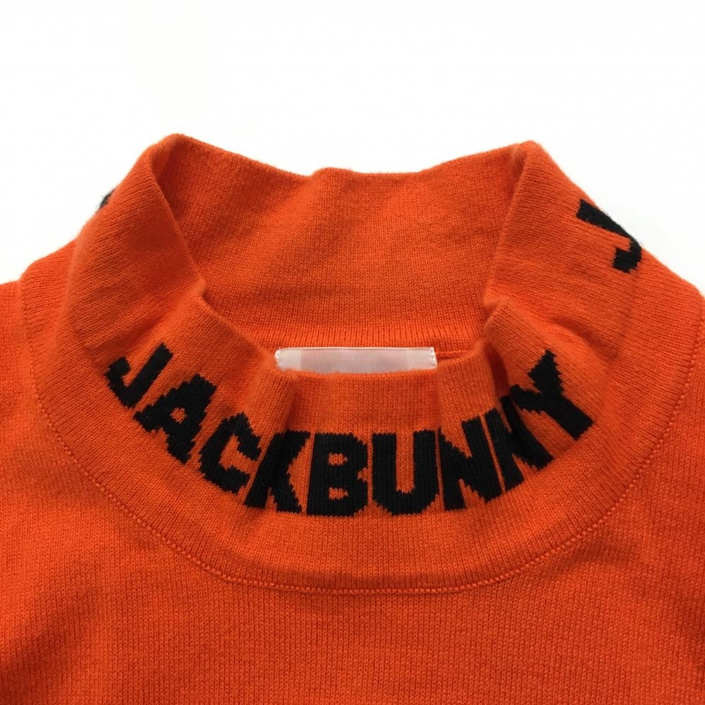 【美品】ジャックバニー ハイネックセーター オレンジ×黒 ネックロゴ コットン混 ニット メンズ 5(L) ゴルフウェア Jack Bunny