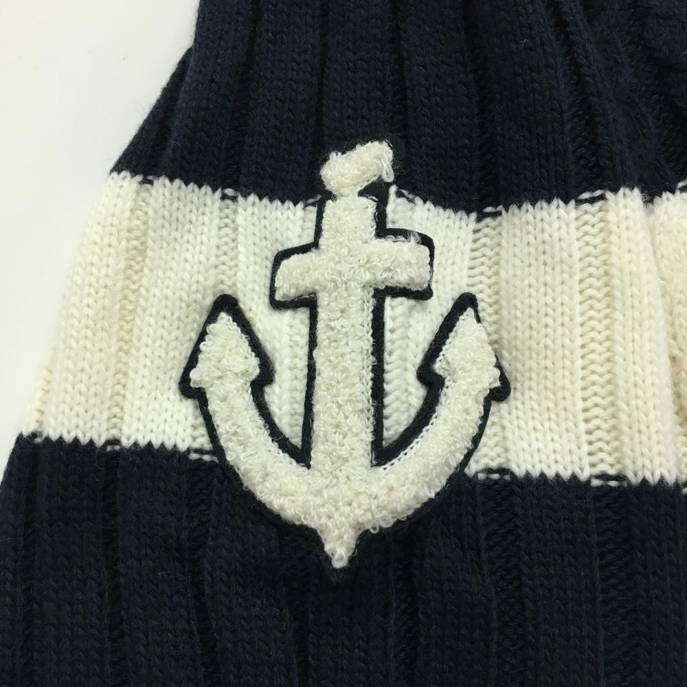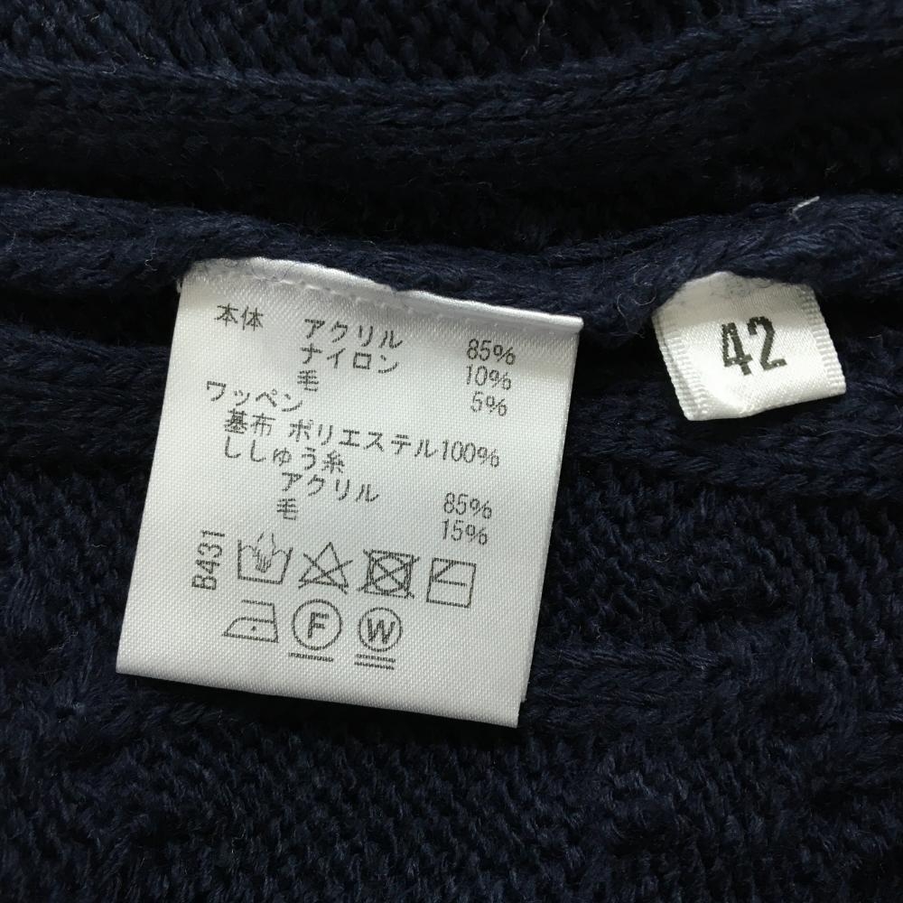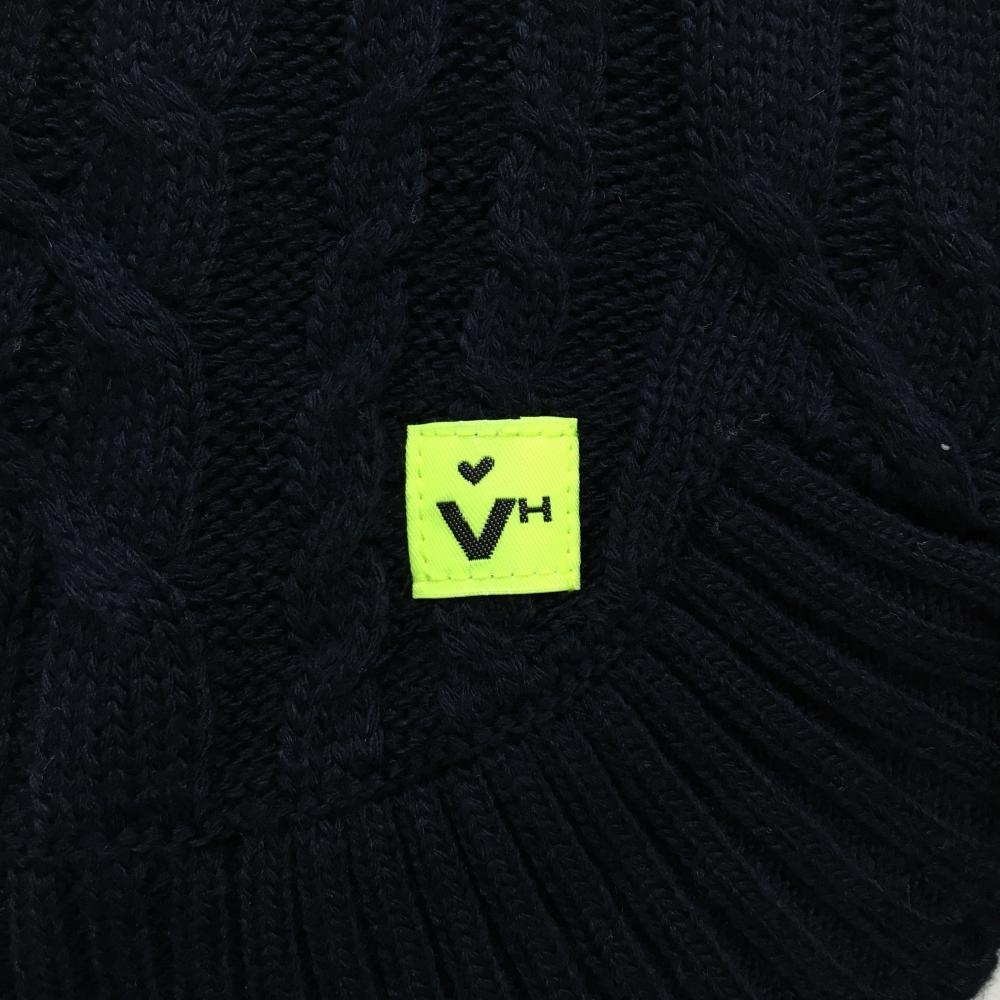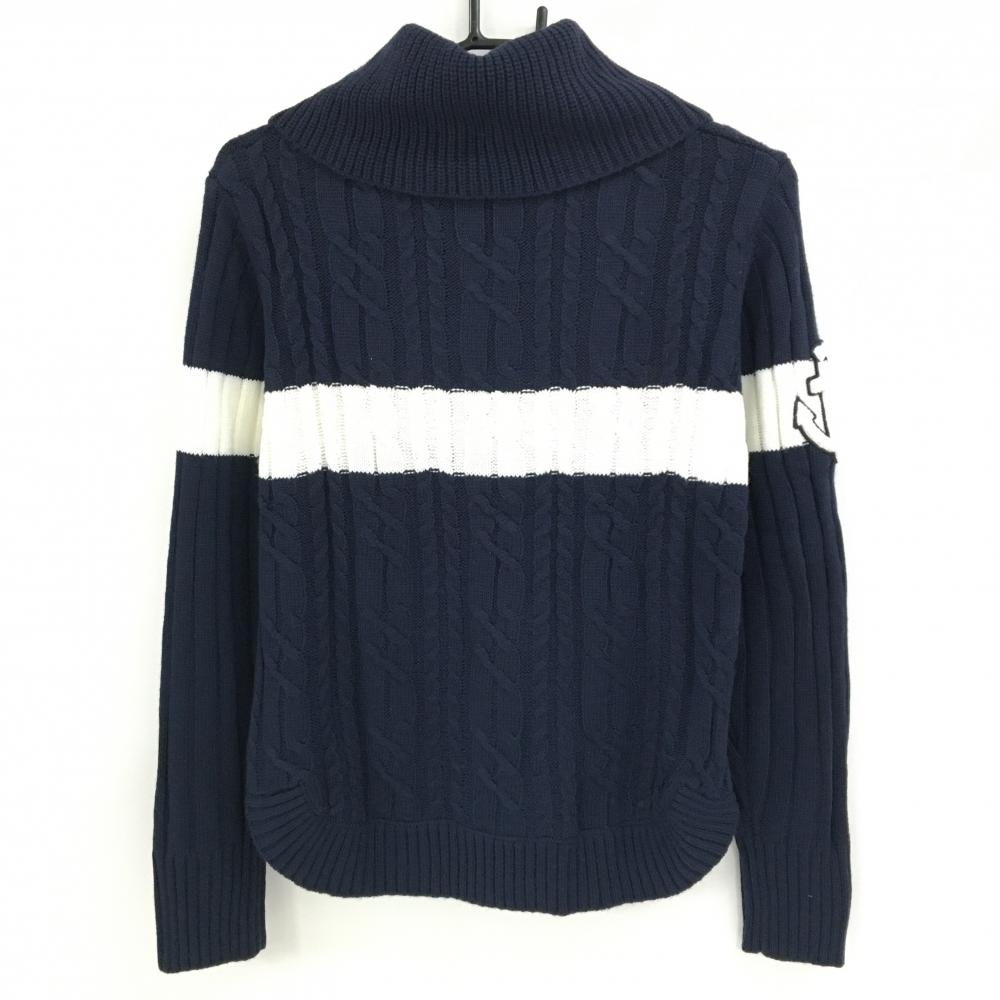 【超美品】ビバハート タートルネックセーター ネイビー×白 ケーブル編み 胸元ライン レディース 42(L) ゴルフウェア VIVA HEART