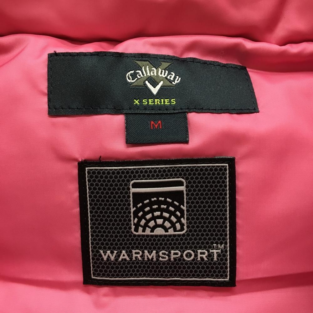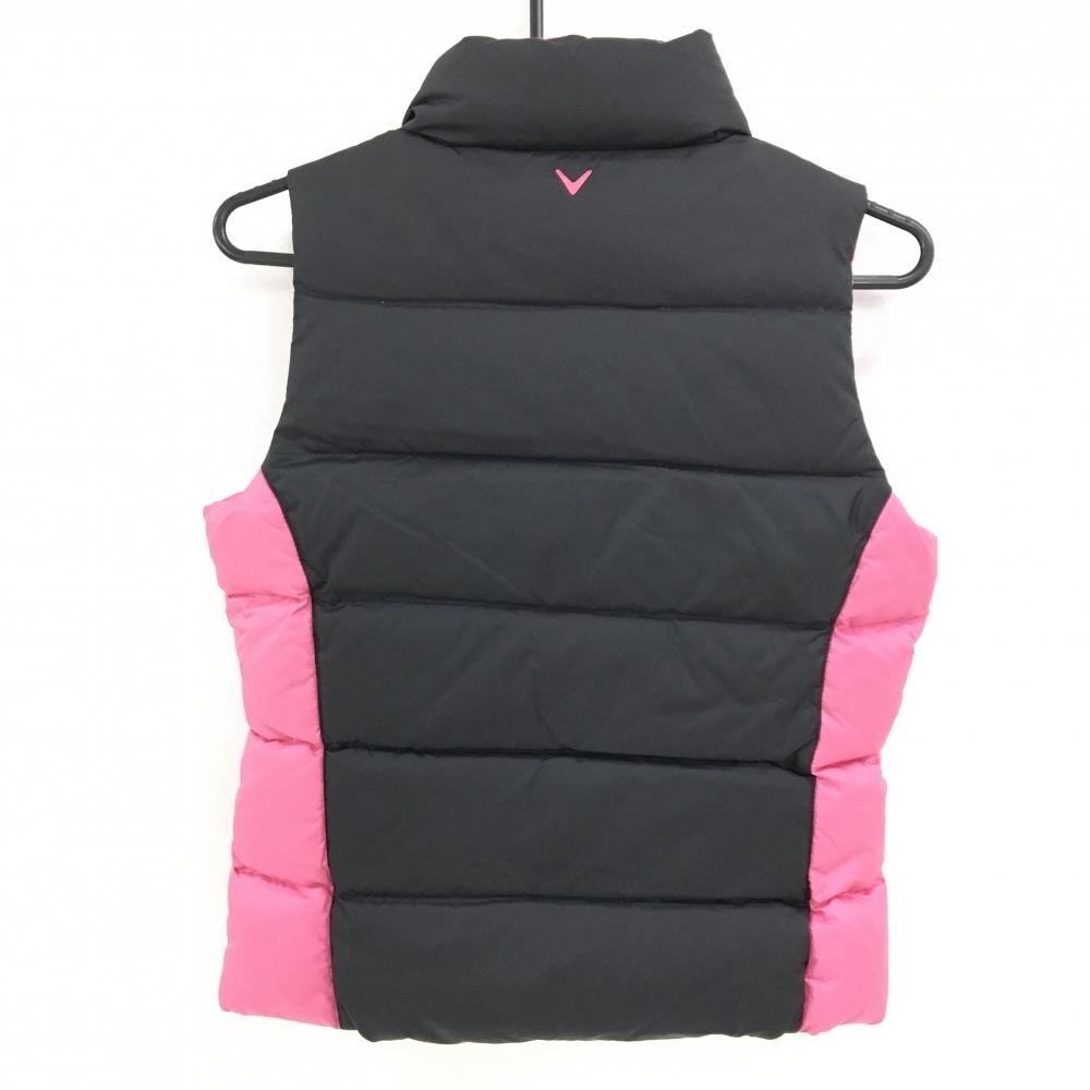 【美品】キャロウェイ ダウンベスト 黒×ピンク ロゴ刺しゅう ダブルジップ ダウン90% レディース M ゴルフウェア Callaway