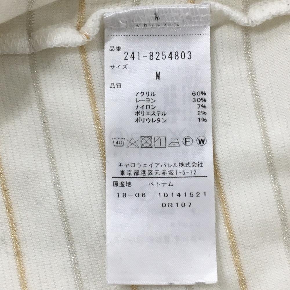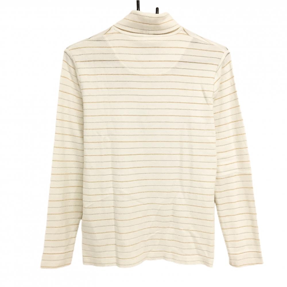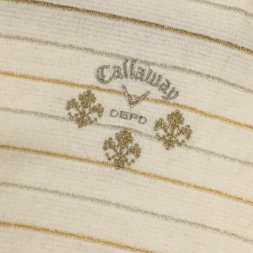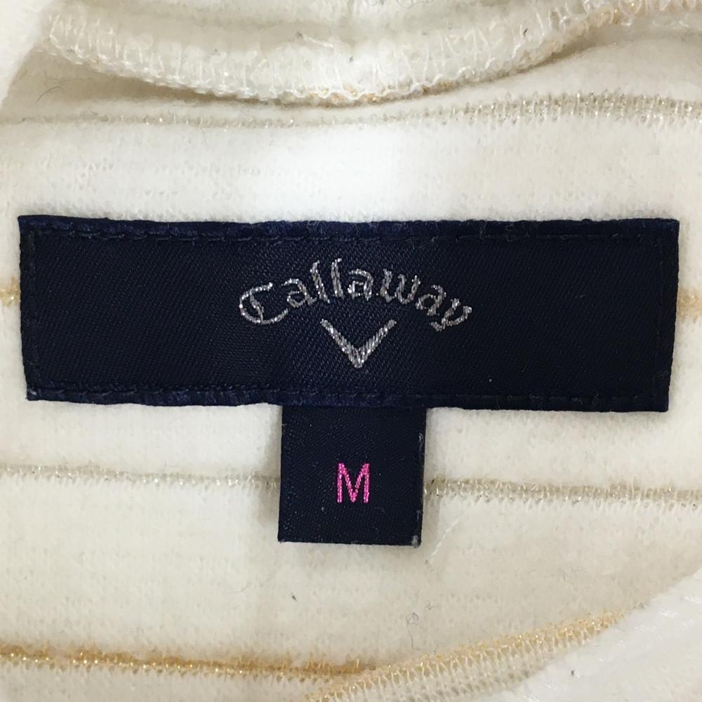 キャロウェイ 長袖ハイネックシャツ 白×ゴールド×シルバー ボーダー 起毛素材 レディース M ゴルフウェア Callaway