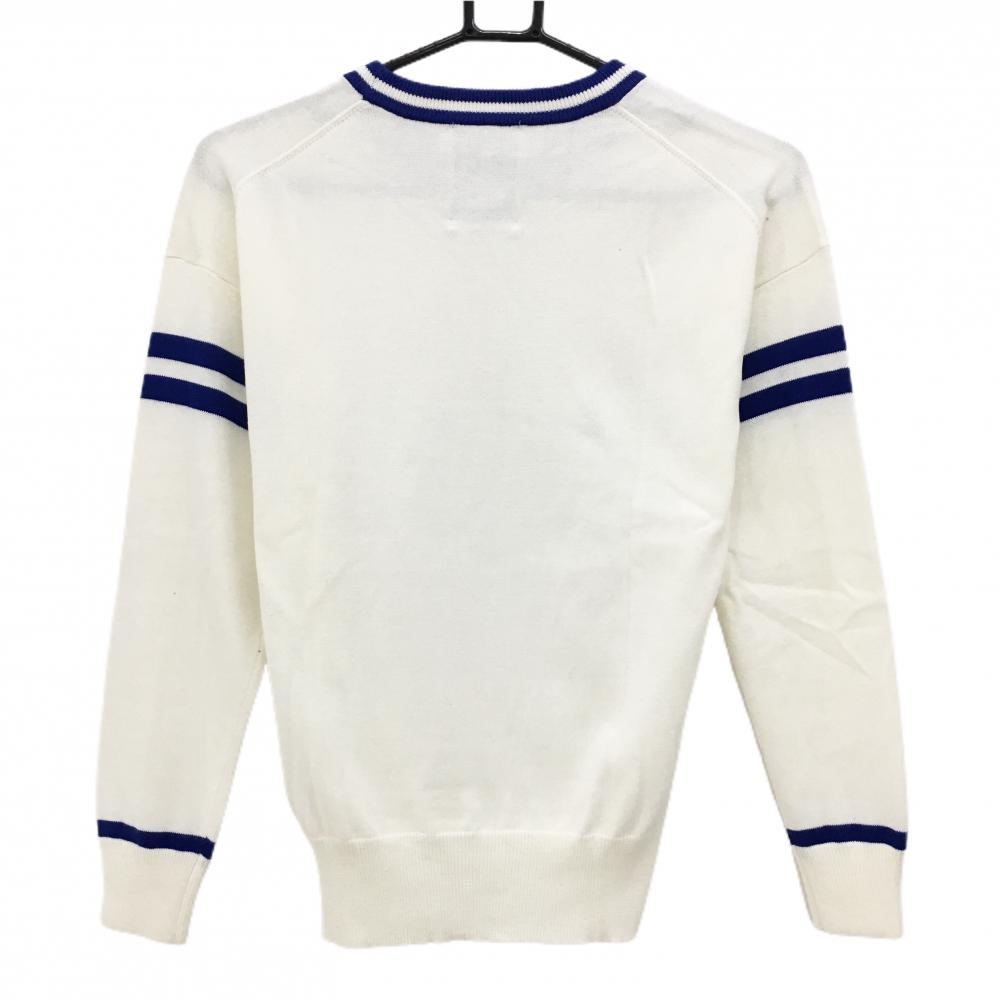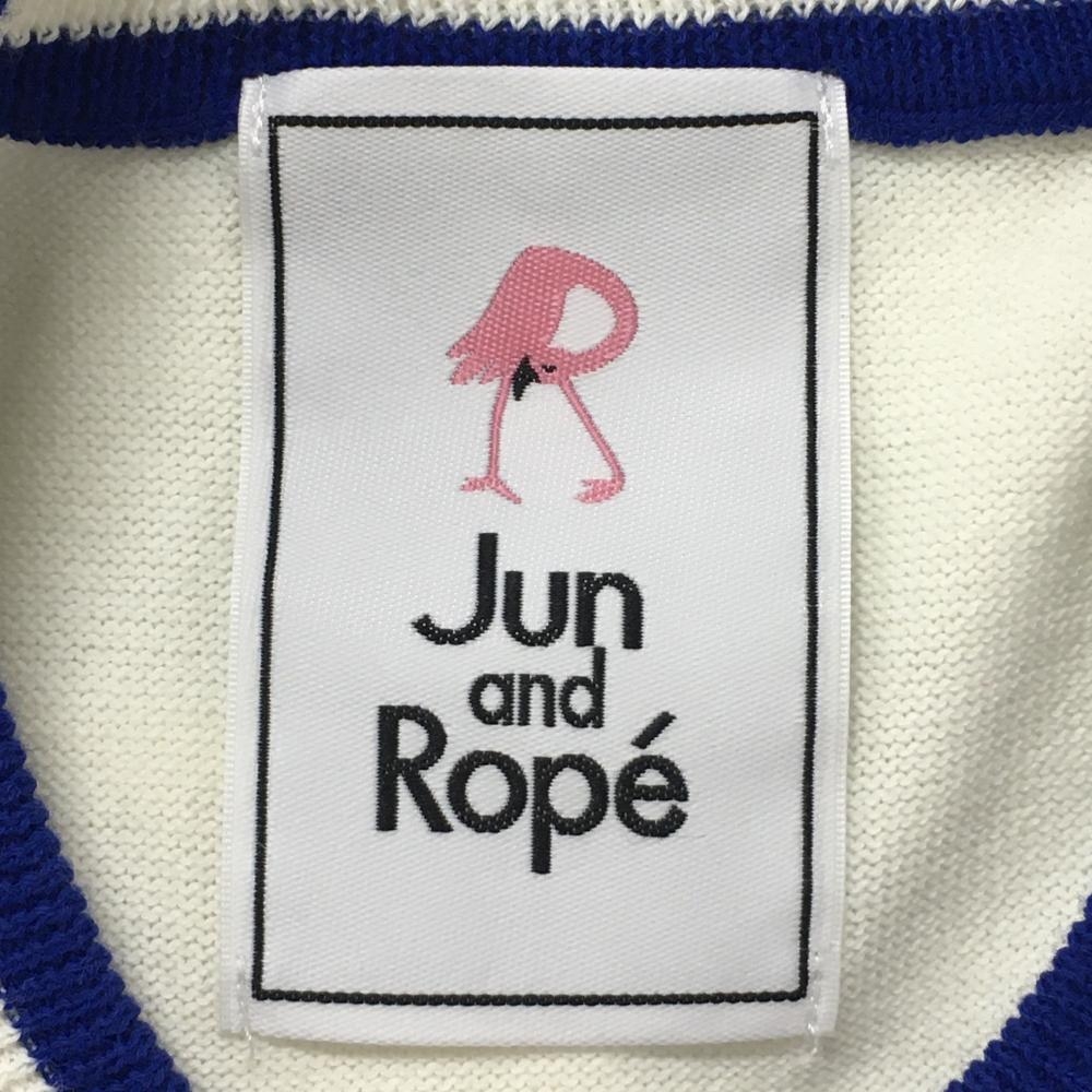 【超美品】ジュンアンドロペ セーター 白×ブルー ニット アクリル混 袖ライン レディース M ゴルフウェア JUN&ROPE