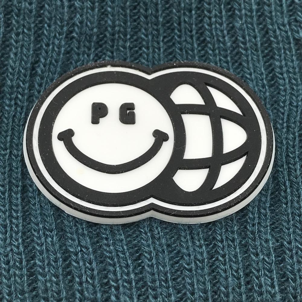 【超美品】パーリーゲイツ ニット帽 ダークグリーン×ネイビー×ライトグレー ニコちゃん FR ゴルフウェア 2024年モデル PEARLY GATES