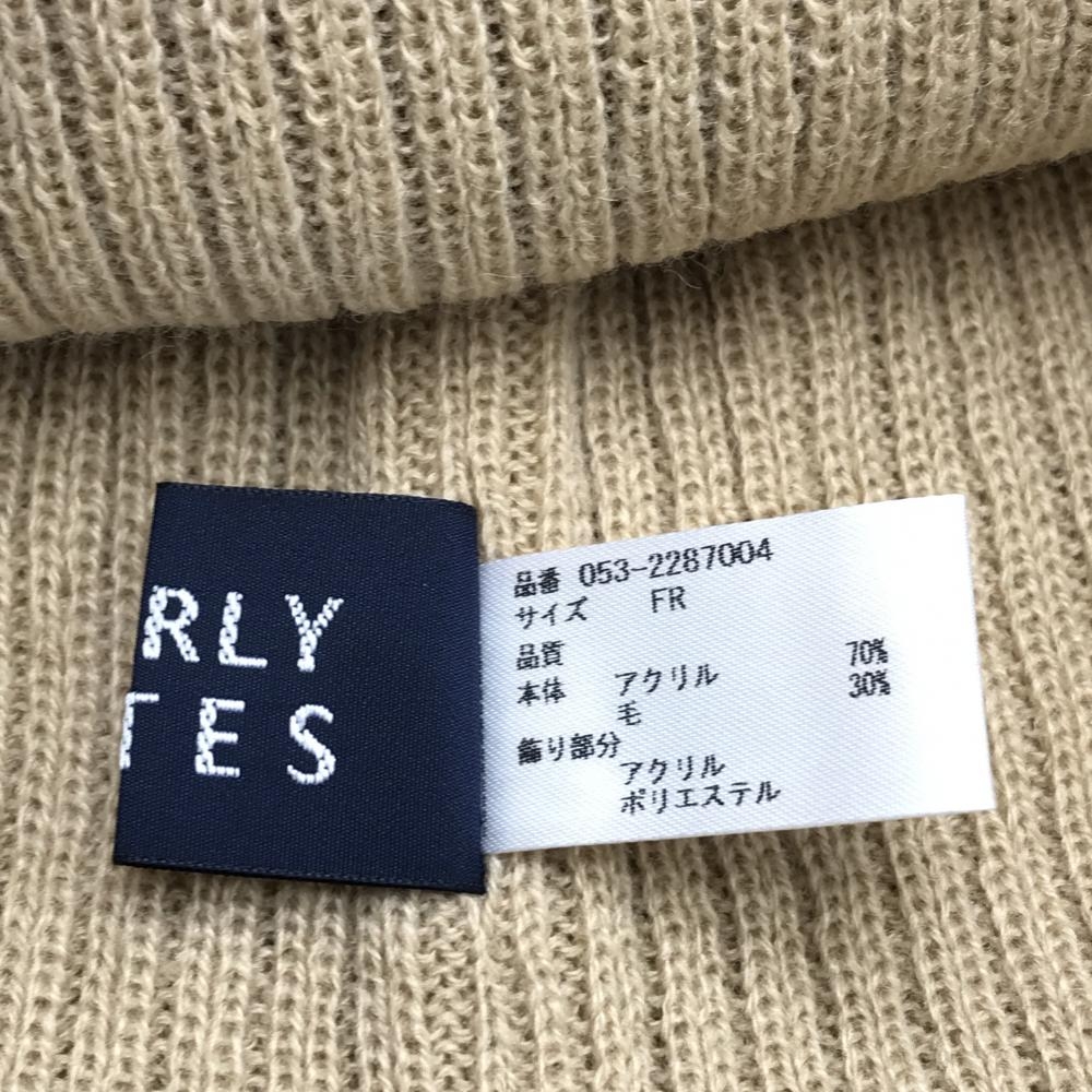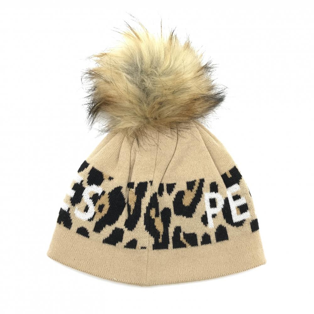 【超美品】パーリーゲイツ ニット帽 ベージュ×白 ボンボン付 ロゴ FR ゴルフウェア PEARLY GATES