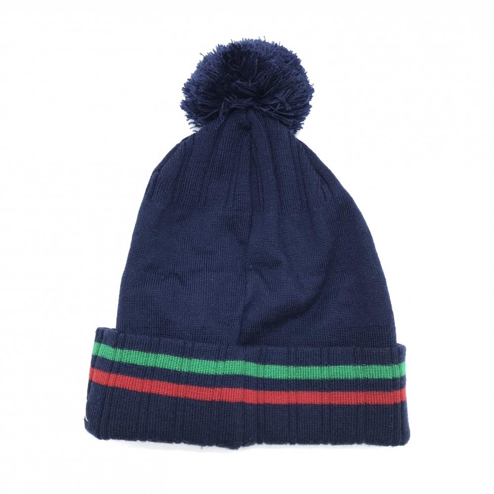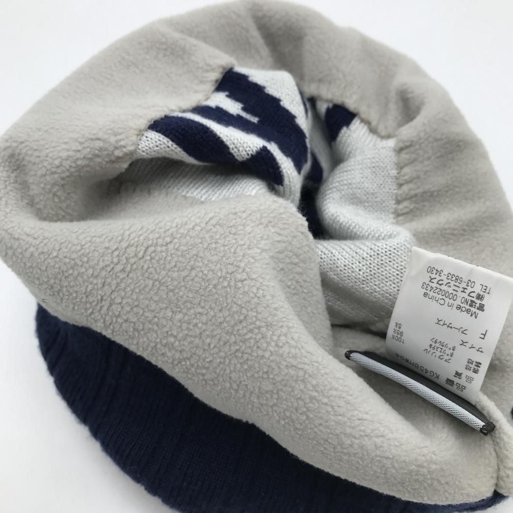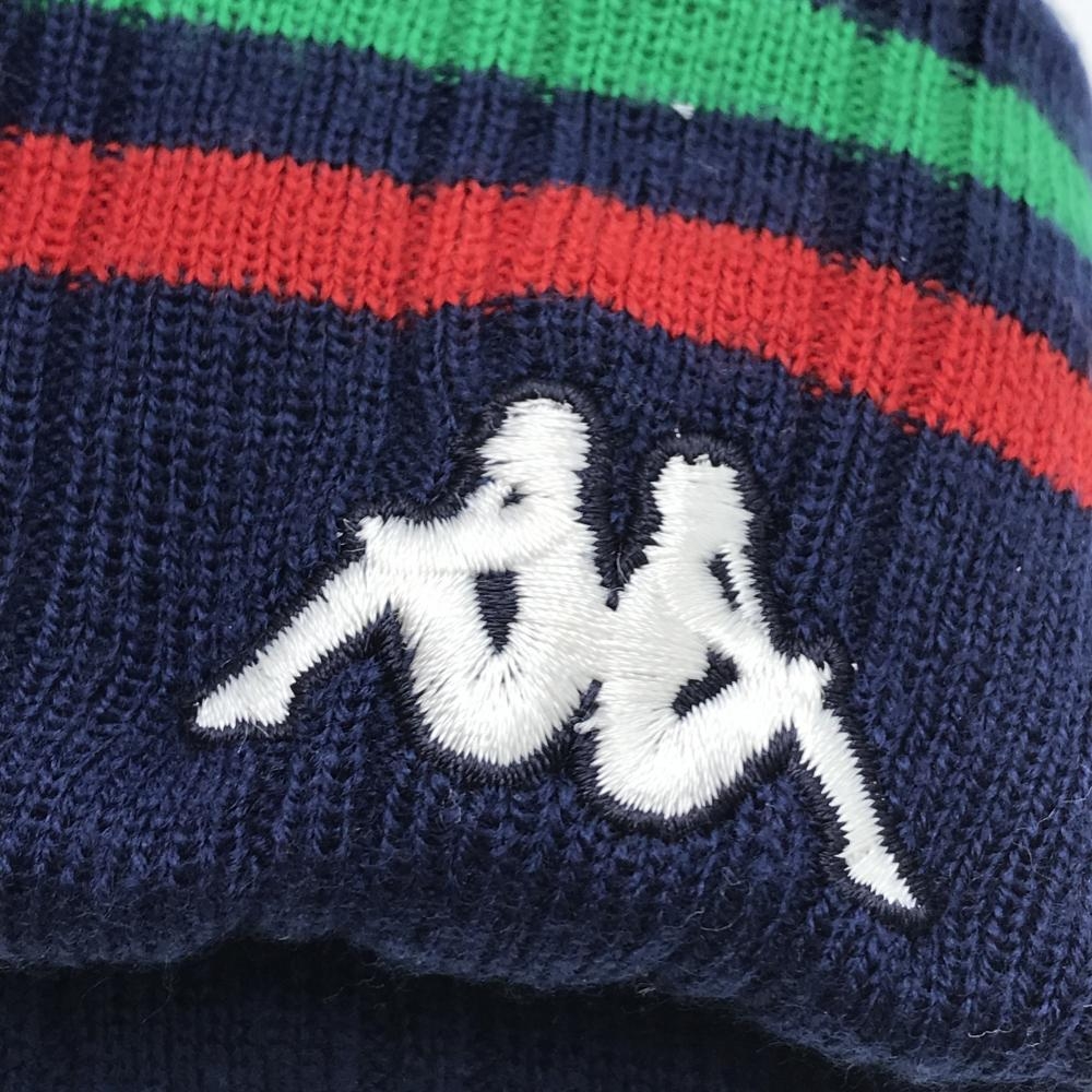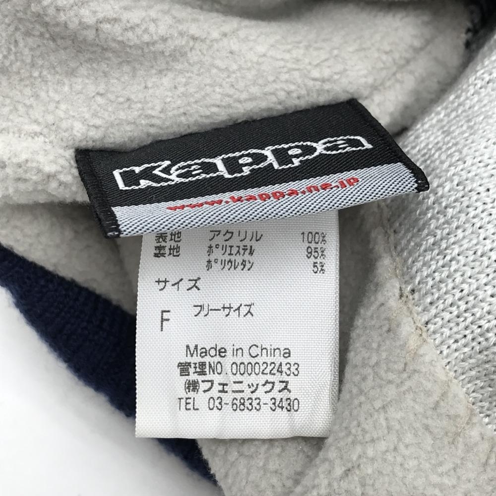 【超美品】カッパ ニット帽 ネイビー×白 ポンポン付 裏一部フリース Fフリーサイズ ゴルフウェア Kappa