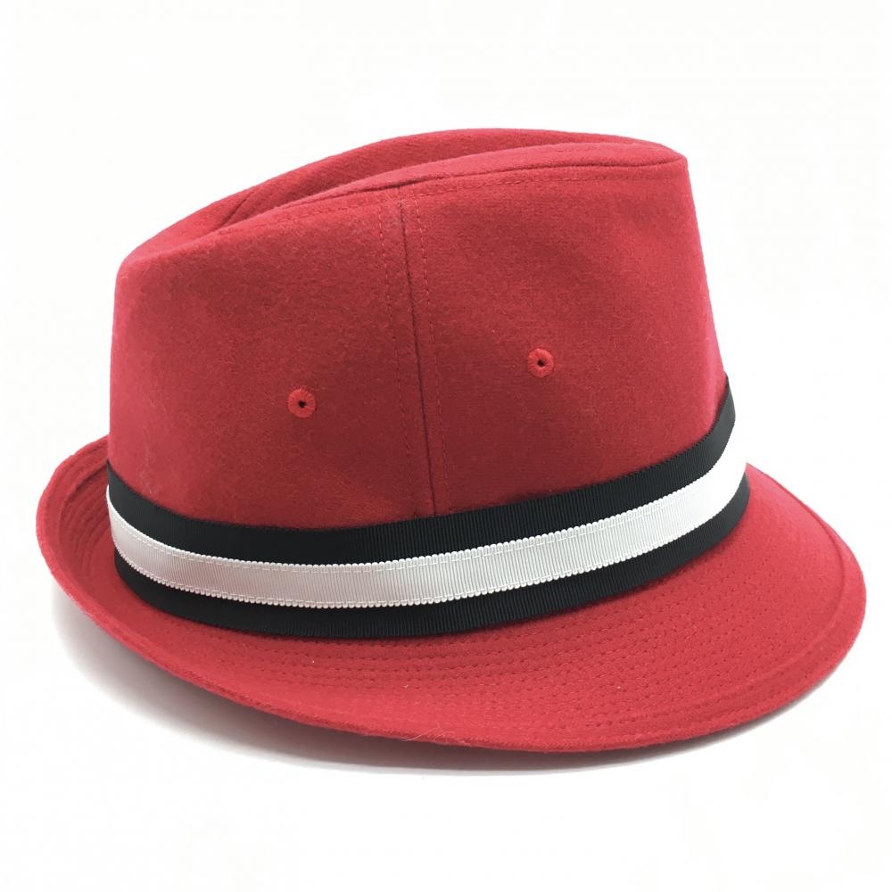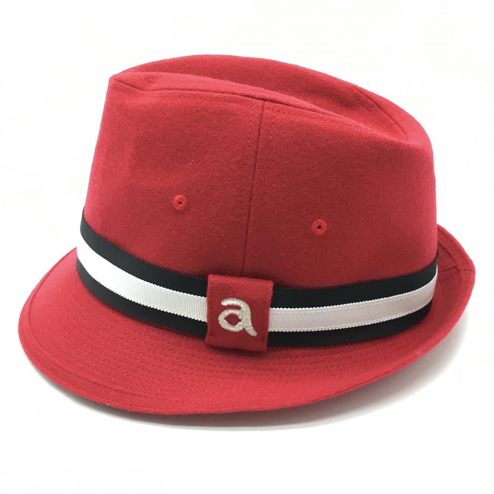 【美品】アルチビオ 中折れハット レッド リボンボーダー ウール混 レディース ゴルフウェア archivio