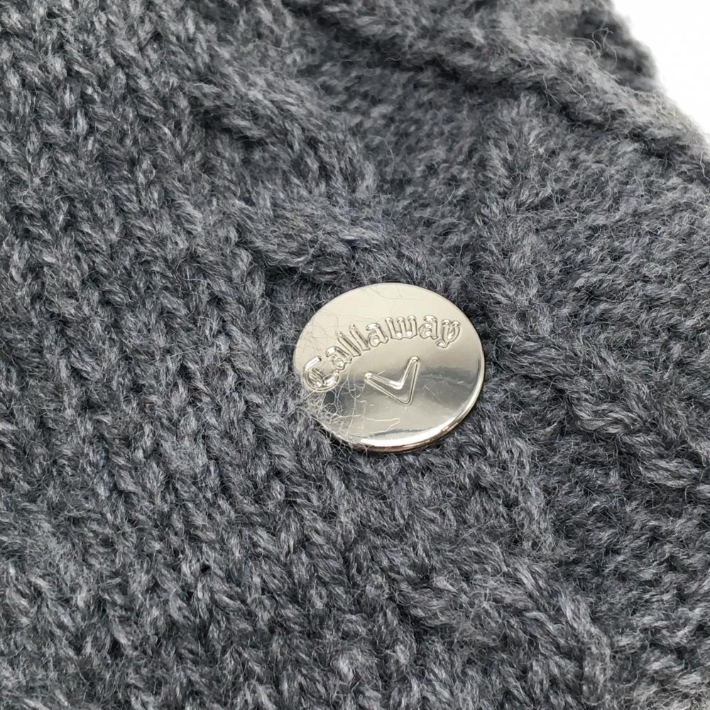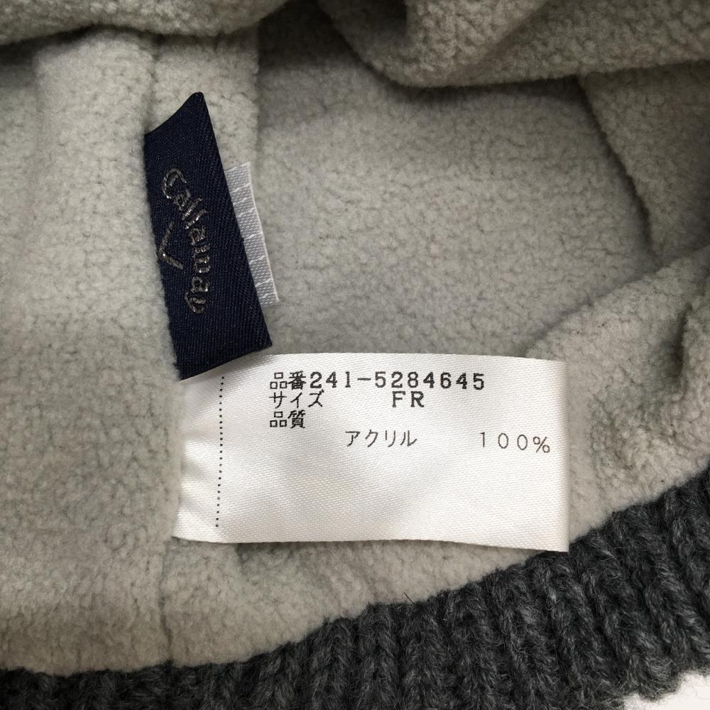 【超美品】キャロウェイ ニット帽 グレー ケーブル編み 裏フリース アクリル100% FR ゴルフウェア Callaway