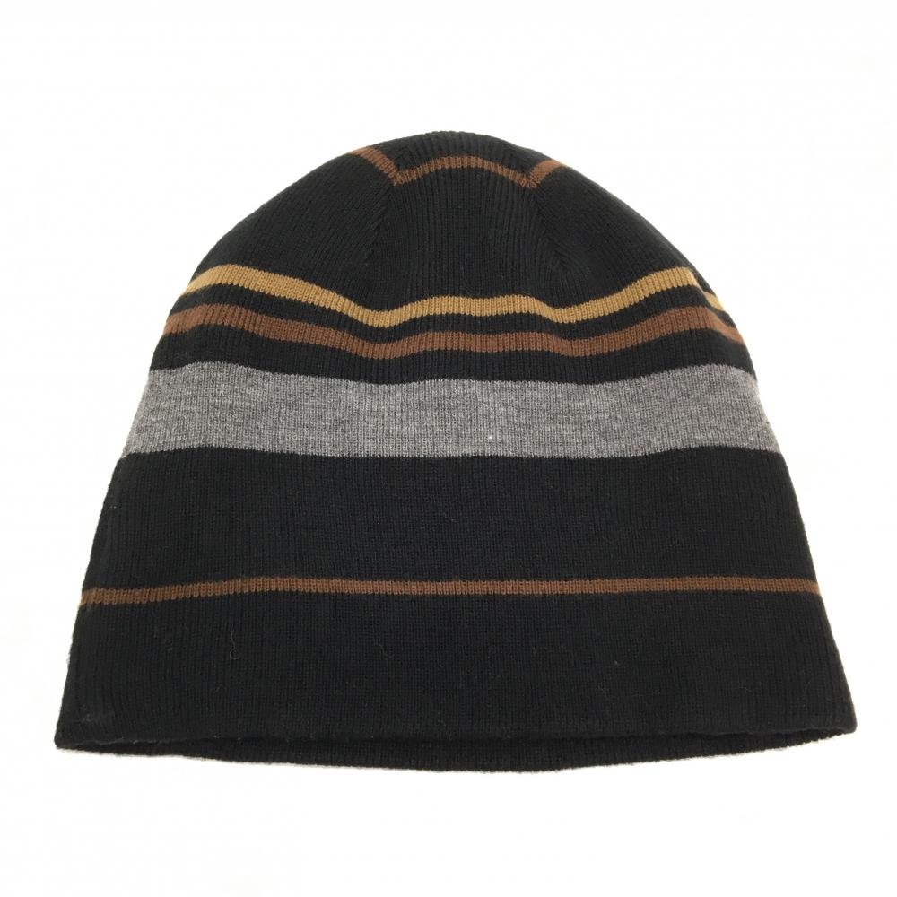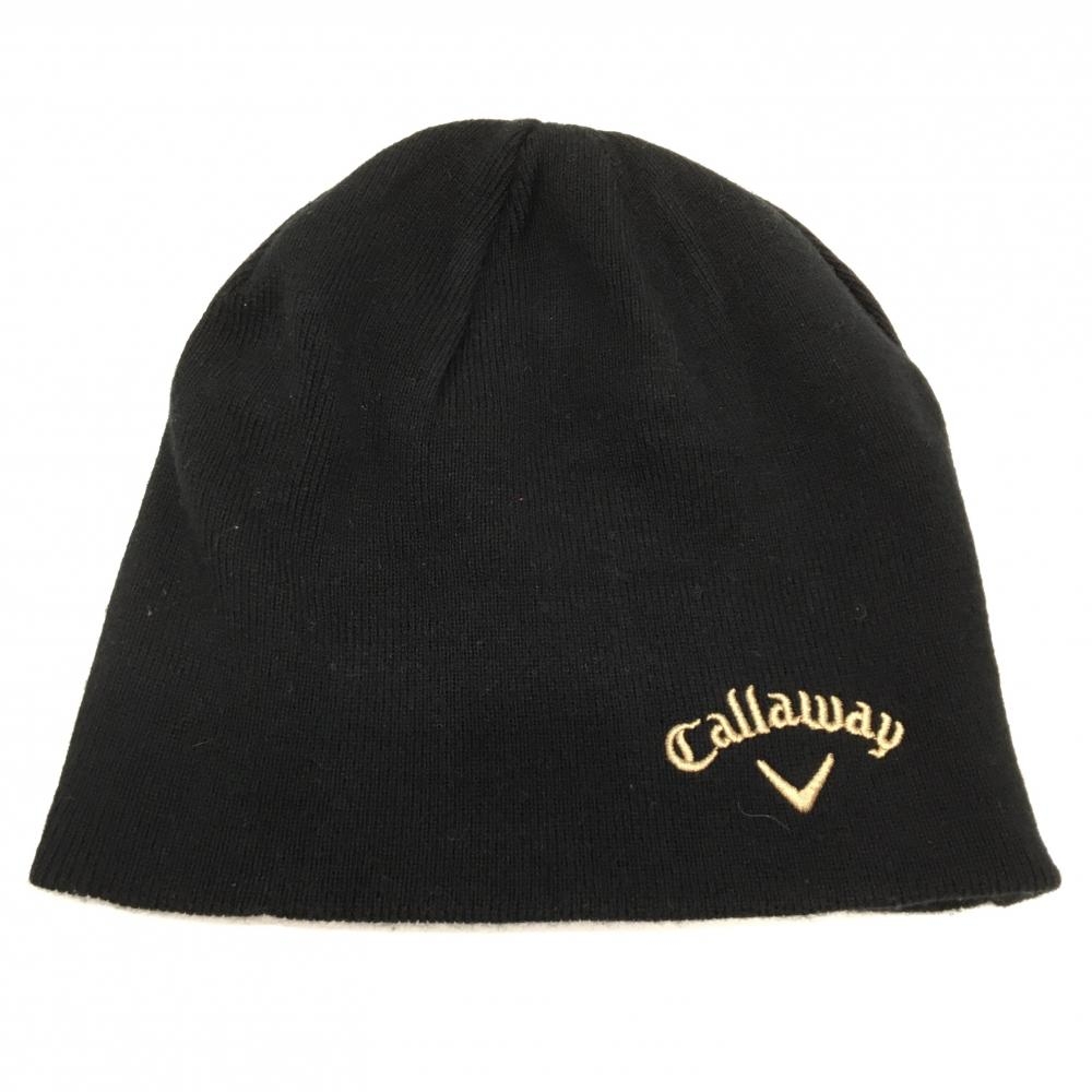 【超美品】キャロウェイ リバーシブルニット帽 黒×ブラウン ボーダー ゴルフウェア Callaway
