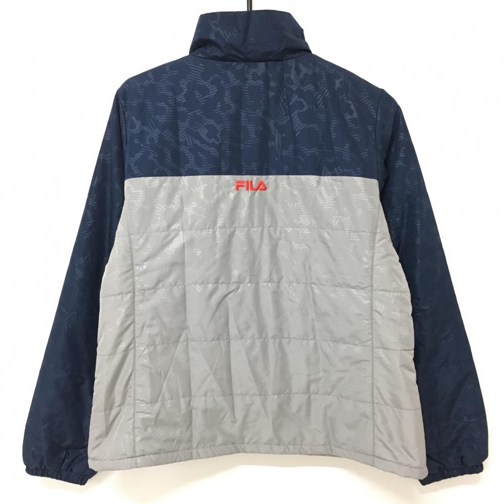 フィラゴルフ 中綿ジャケット グレー×ネイビー 総柄地模様 レディース LL ゴルフウェア FILA GOLF
