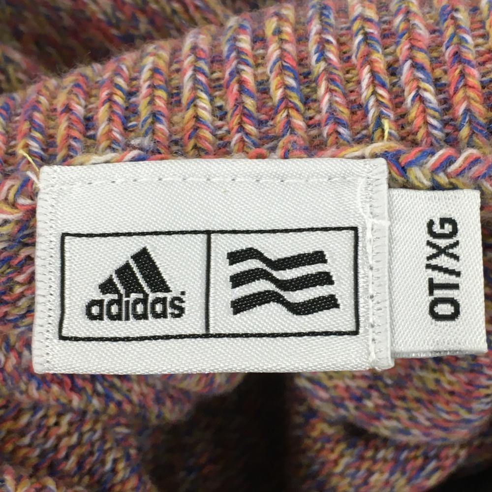 【超美品】アディダス タートルネックニットワンピース ピンク系×マルチカラー ウエスト調整紐 レディース OT ゴルフウェア adidas