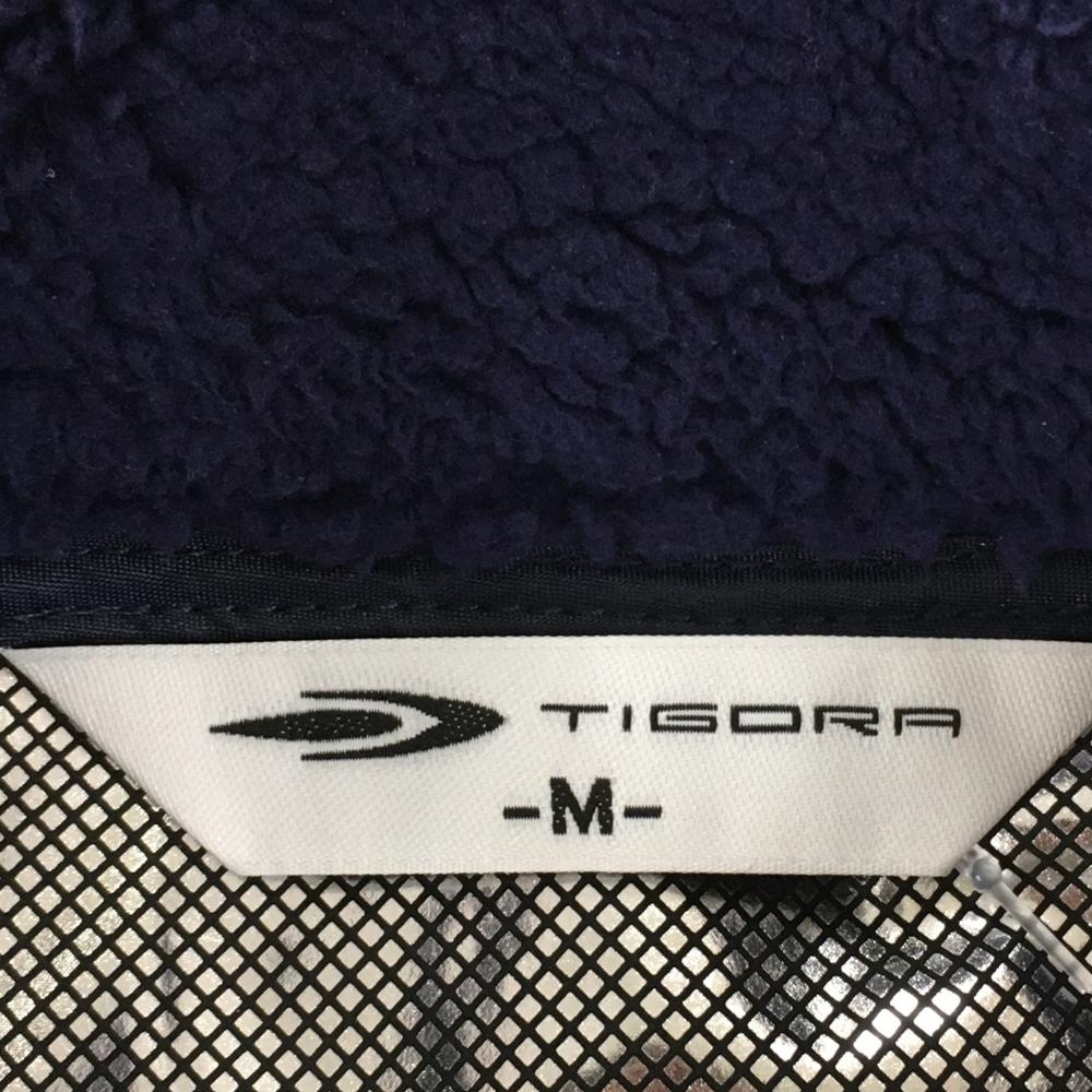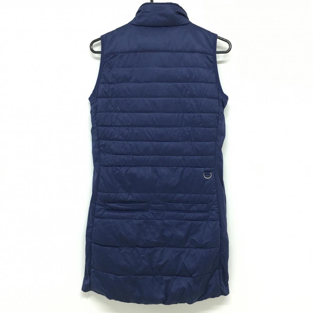 【美品】ティゴラ 中綿ワンピース ネイビー×黒 総柄 ネックボア レディース M ゴルフウェア TIGORA
