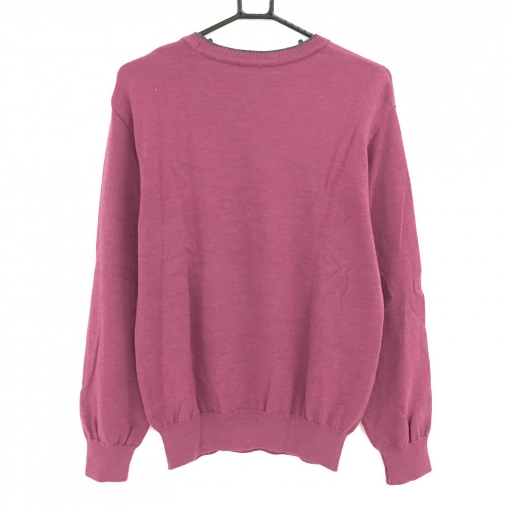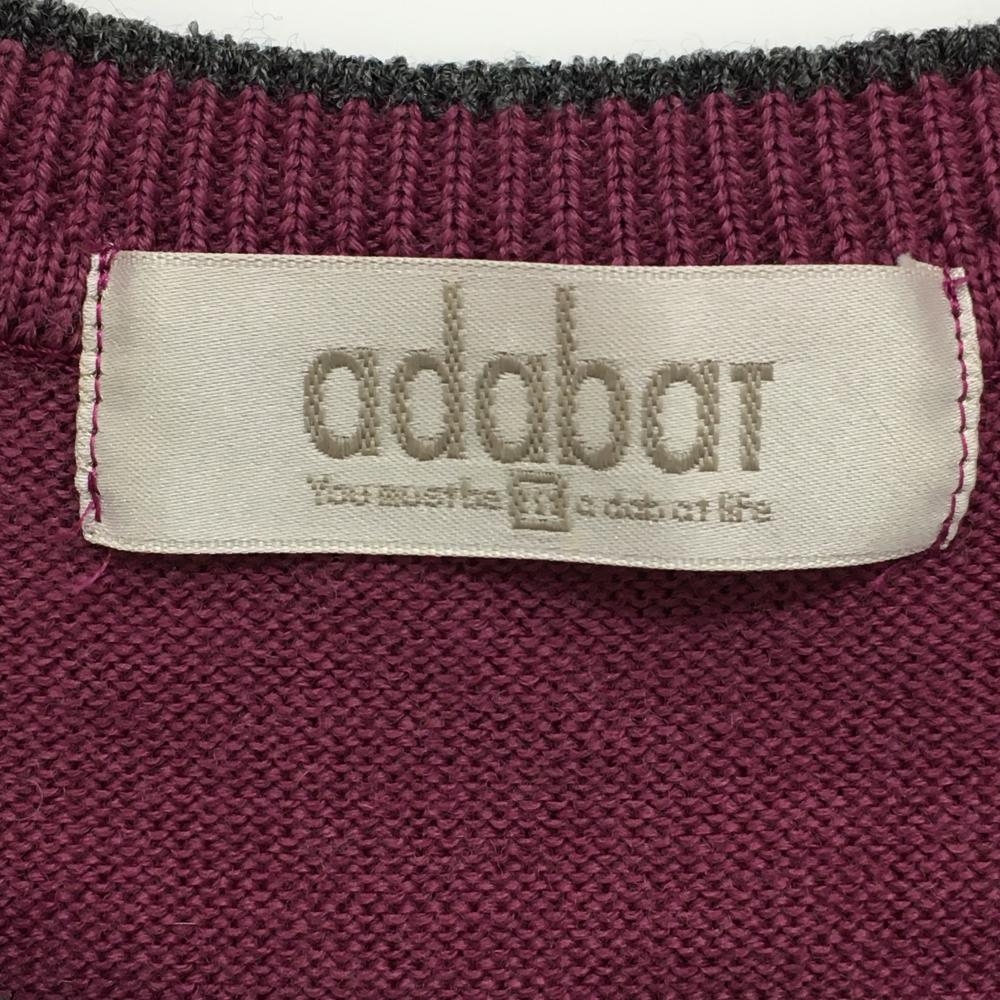 【美品】アダバット セーター パープル×ダークグレー ニット ウール100% ドッグ レディース II(L) ゴルフウェア adabat