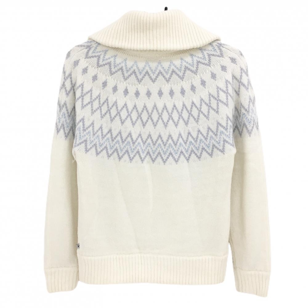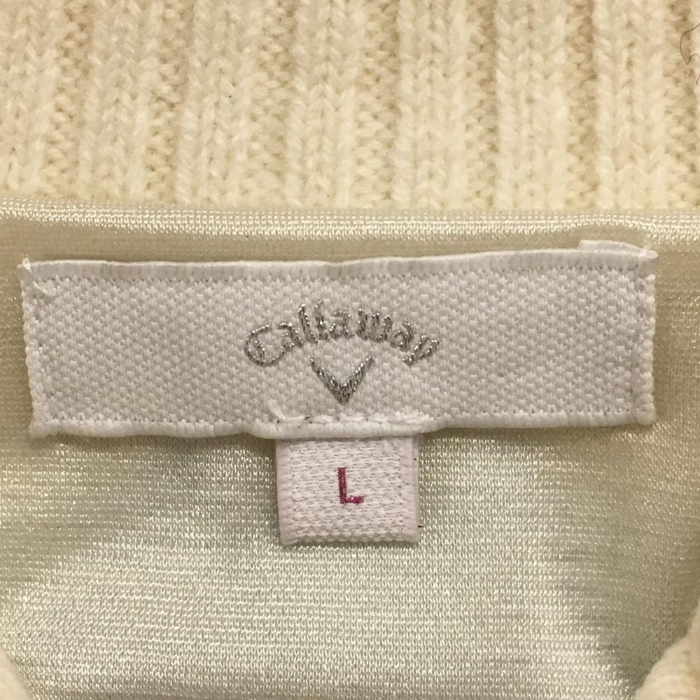 キャロウェイ ニットジャケット アイボリー×グレー ラメ糸 裏地付き ウール混 レディース L ゴルフウェア Callaway