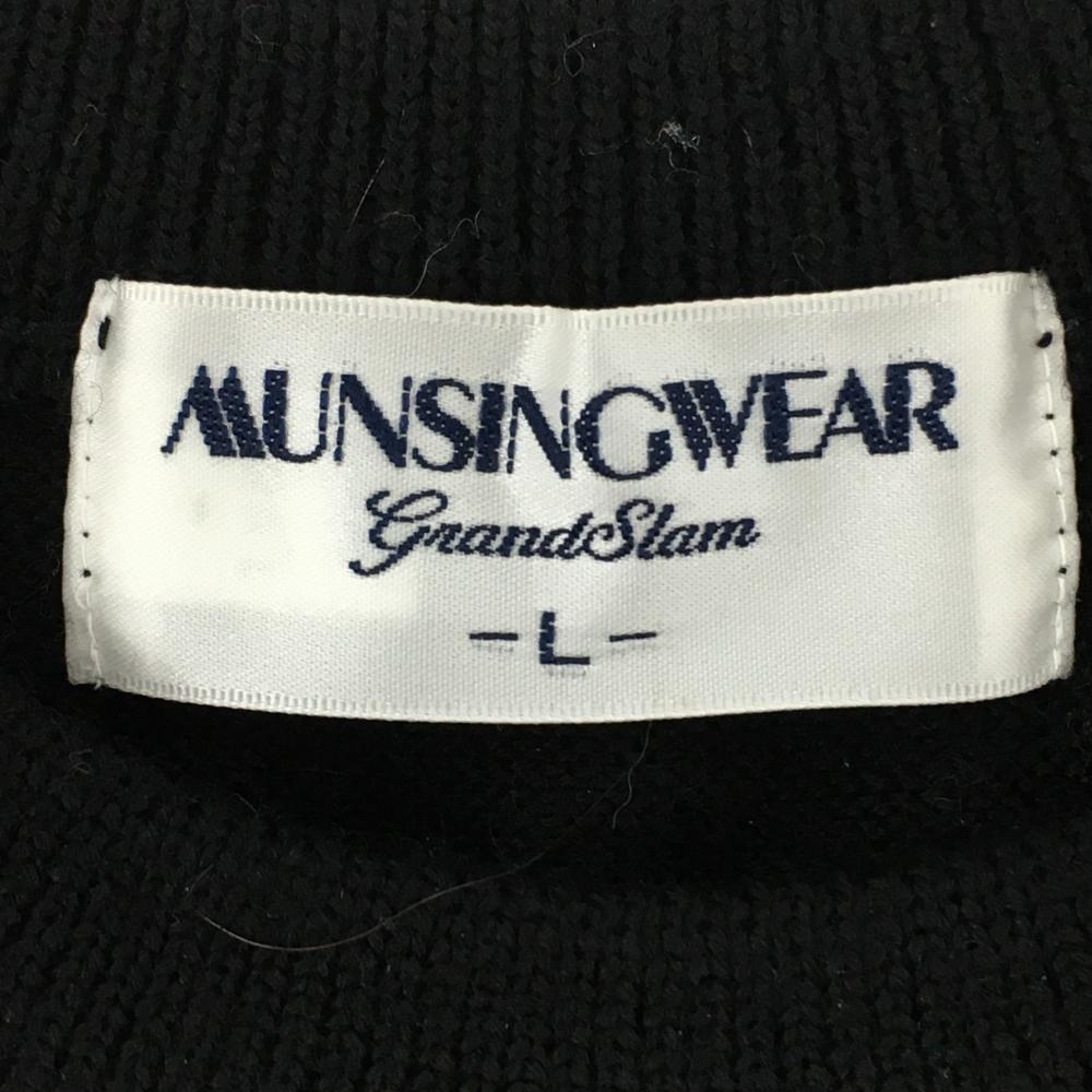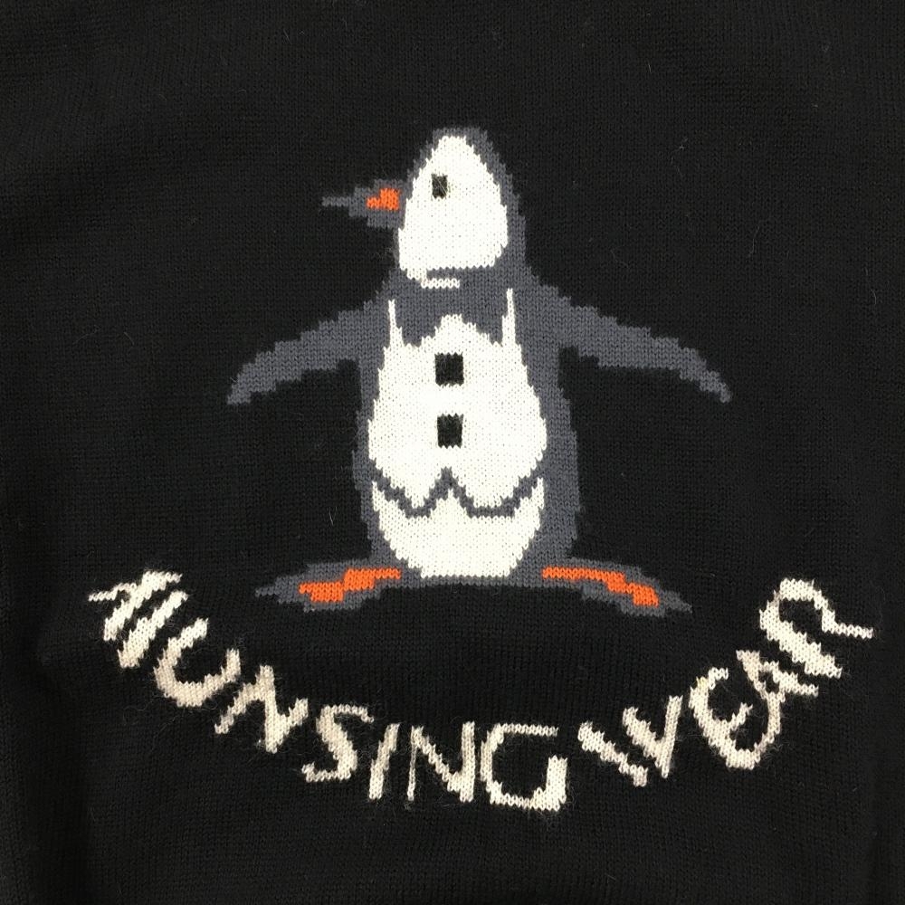 マンシングウェア セーター 黒×白 ニット ウール100% ビッグロゴ レディース L ゴルフウェア Munsingwear