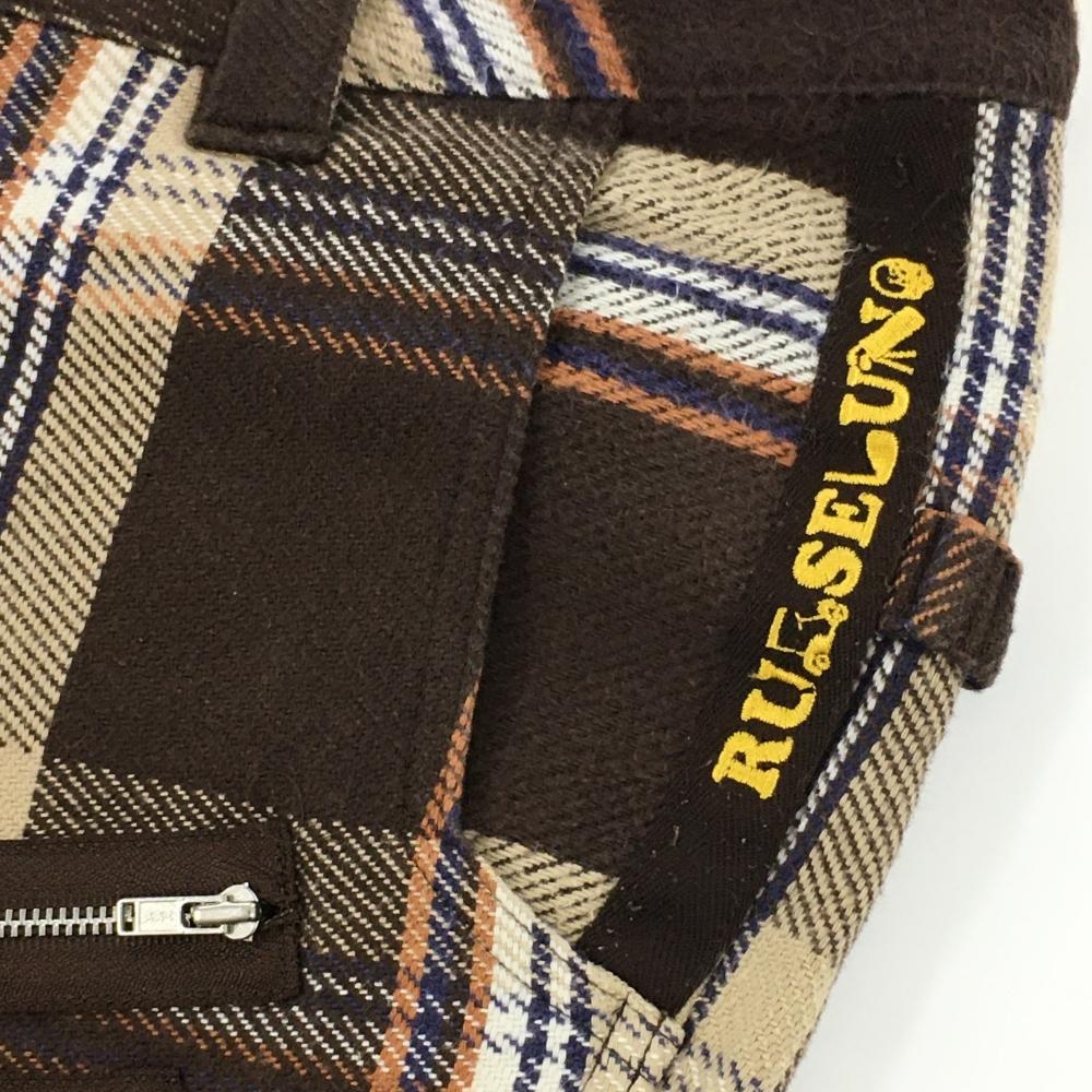 【美品】ラッセルノ パンツ ブラウン×ベージュ チェック 起毛素材 メンズ M ゴルフウェア RUSSELUNO