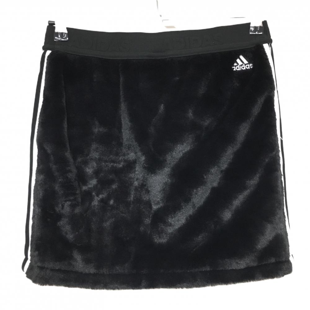 【超美品】アディダス ボアスカート 黒×白 サイド3ライン ウエストゴム レディース J/L ゴルフウェア adidas