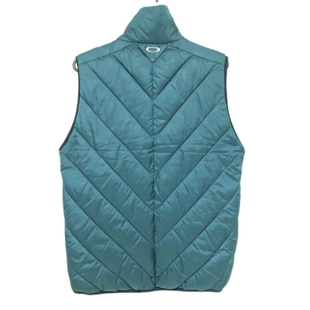 【美品】オークリー 中綿ベスト ブルー 地模様 ロゴ白 メンズ L ゴルフウェア Oakley