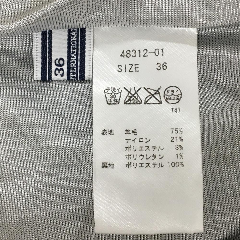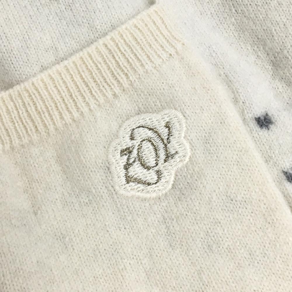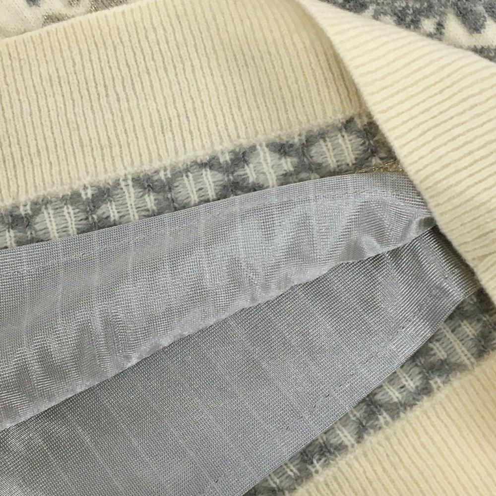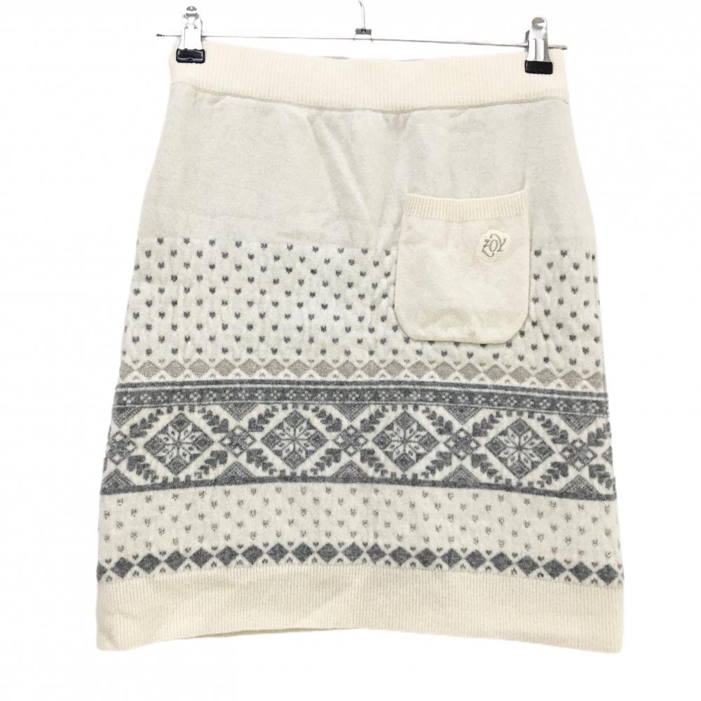 【美品】ゾーイ ニットスカート アイボリー×グレー 総柄 羊毛混 蓄熱裏地 ウエストゴム レディース S ゴルフウェア ZOY