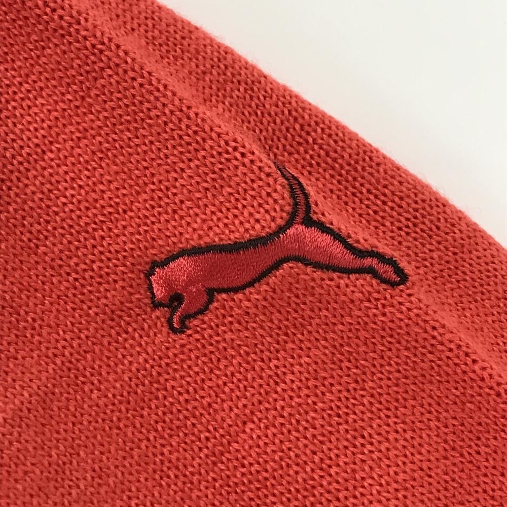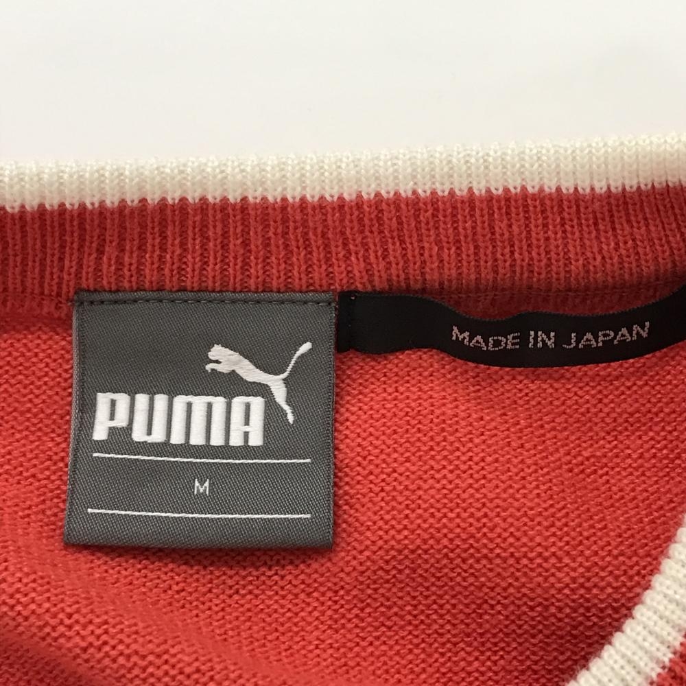 【超美品】プーマ セーター オレンジレッド系×白 前面ノルディック柄 ニット ウール混 レディース M ゴルフウェア PUMA