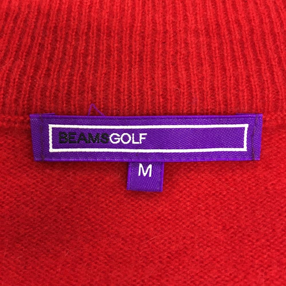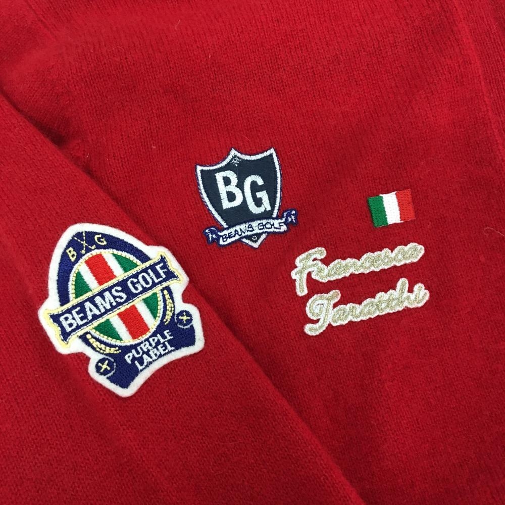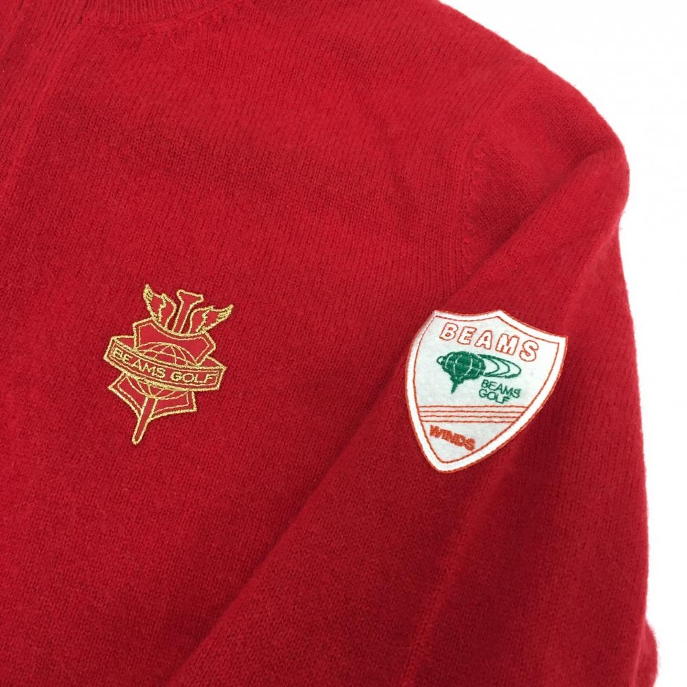 【美品】ビームスゴルフ ニットジャケット レッド ワッペン複数 カシミヤ95% レディース M ゴルフウェア BEAMS GOLF