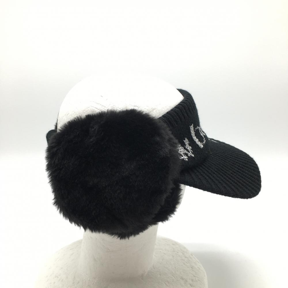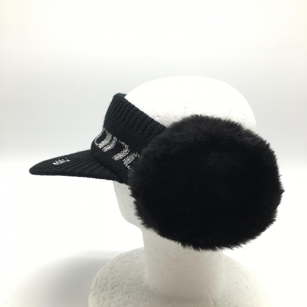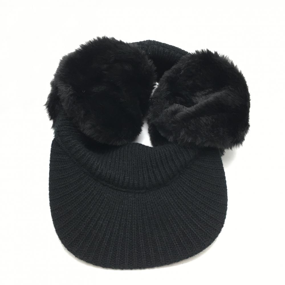 【超美品】ニューバランスゴルフ 耳当て付ニットサンバイザー 黒×シルバー ファー レディース ゴルフウェア New Balance