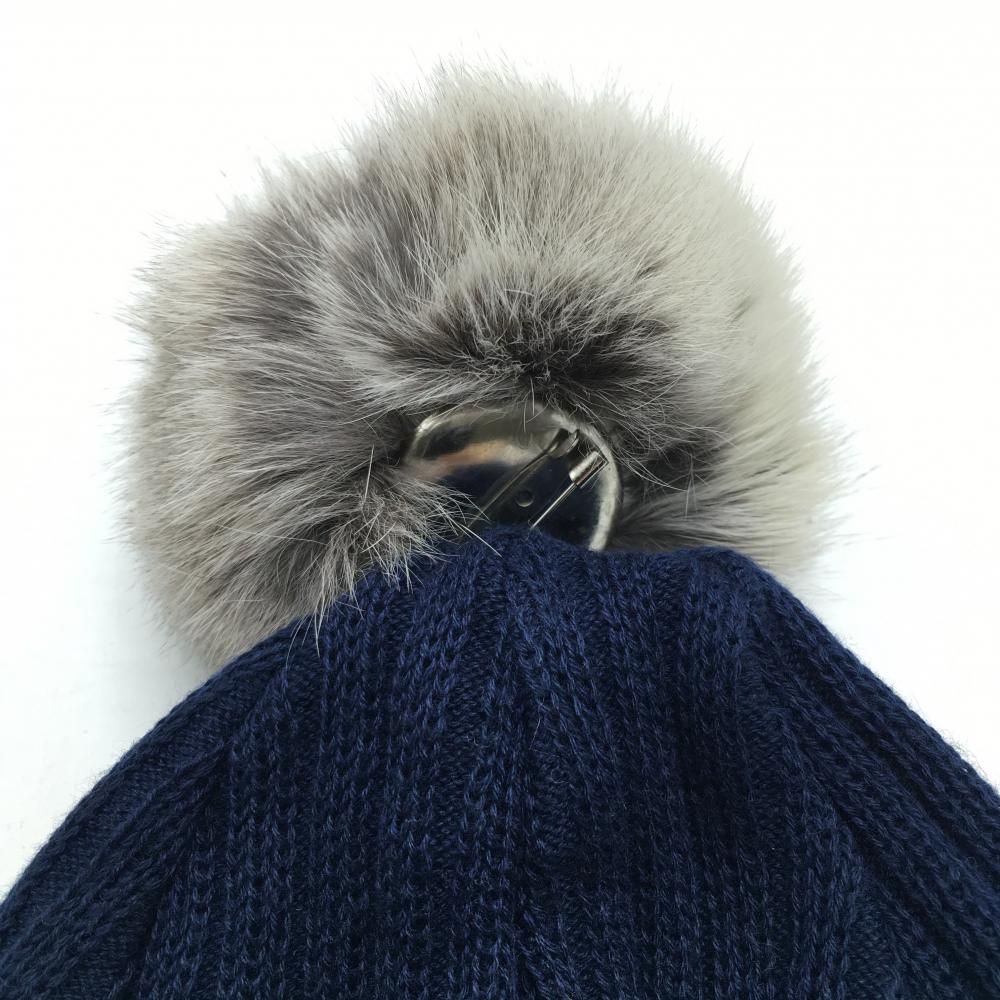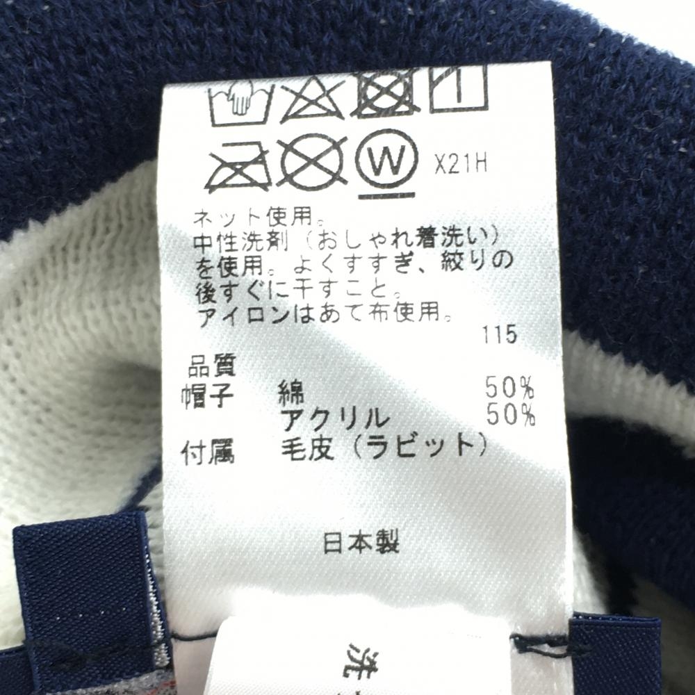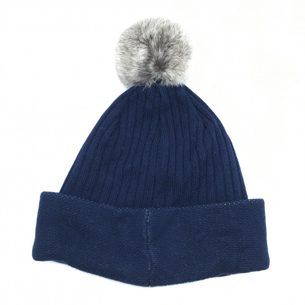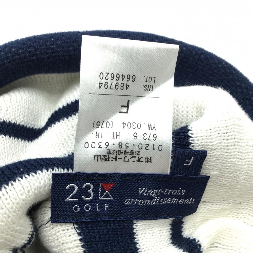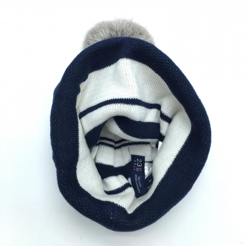 【超美品】23区ゴルフ ニット帽 ネイビー×白 ポンポン付 ポンポン取り外し可 F ゴルフウェア 23区