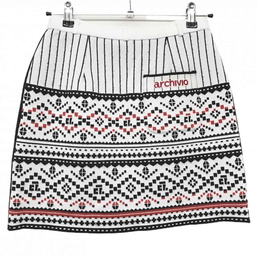 アルチビオ ニットスカート 白×黒 総柄 ウール混 レディース 38(M) ゴルフウェア archivio