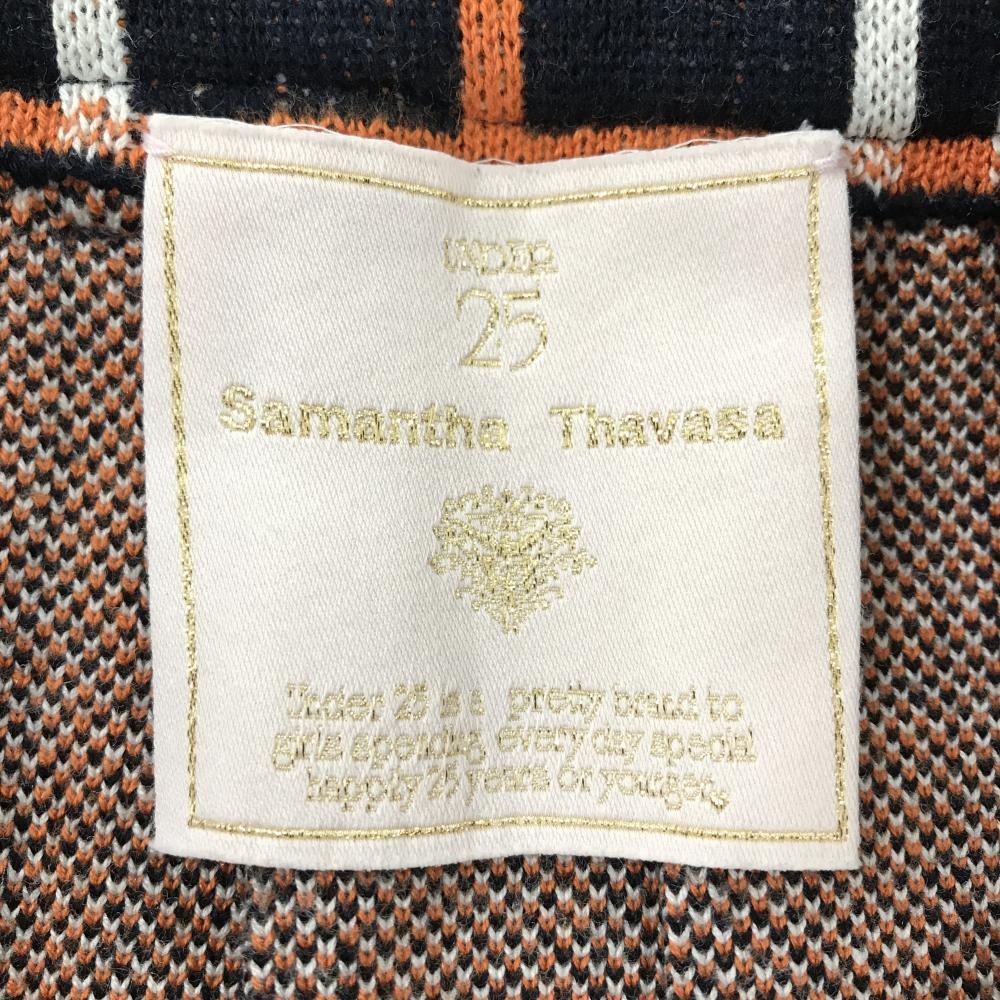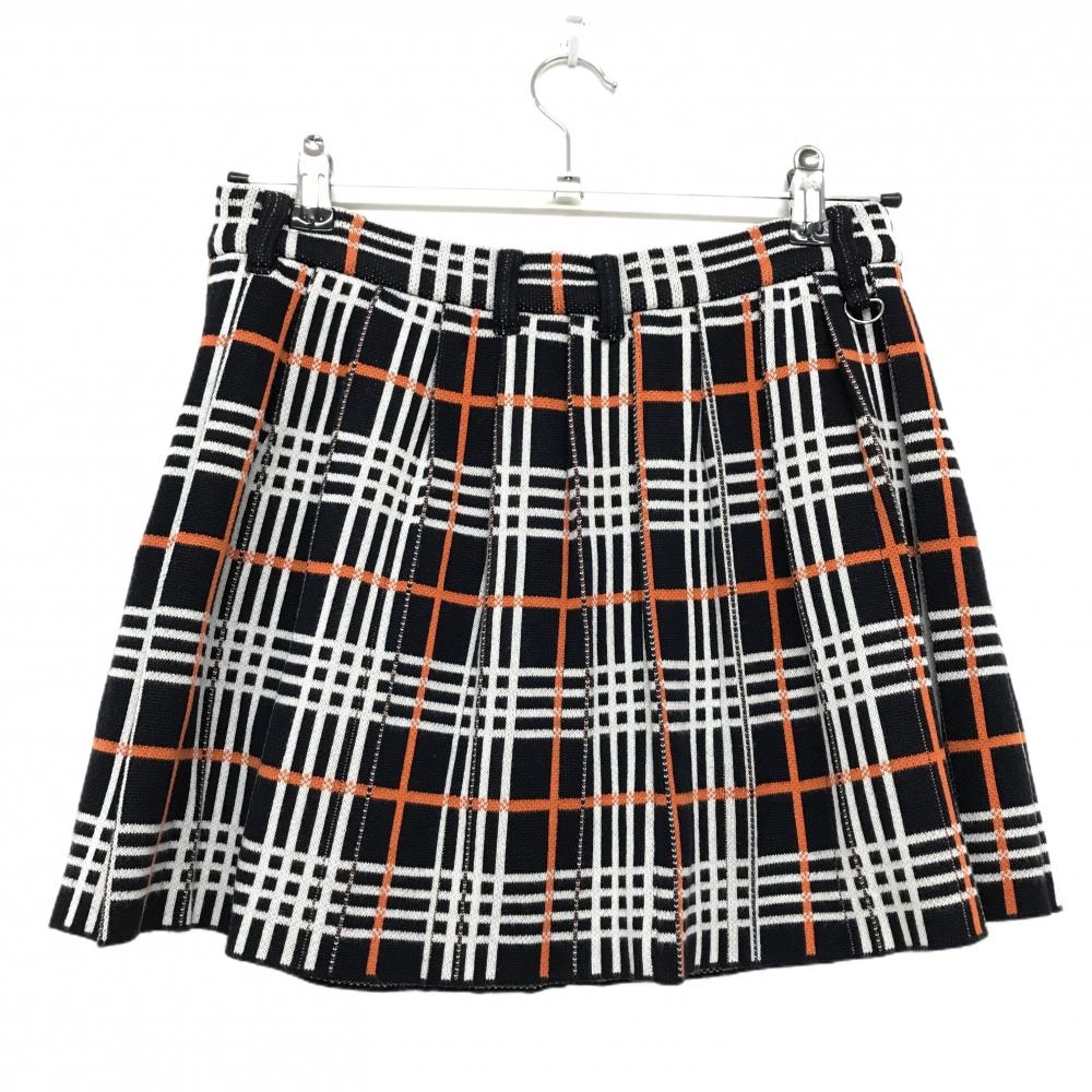 【美品】サマンサタバサUNDER25 ニットスカート ダークネイビー×白×オレンジ チェック レディース S ゴルフウェア Samantha Thavasa