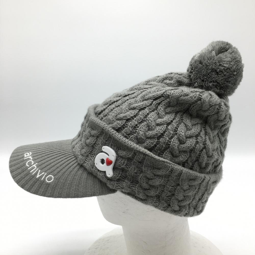 アルチビオ 2WAYニット帽 グレー ボンボン付 サンバイザー レディース ゴルフウェア archivio