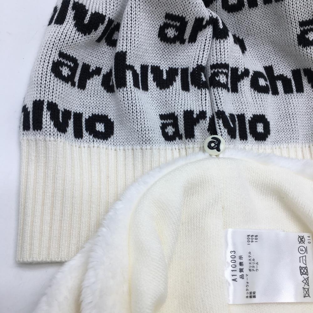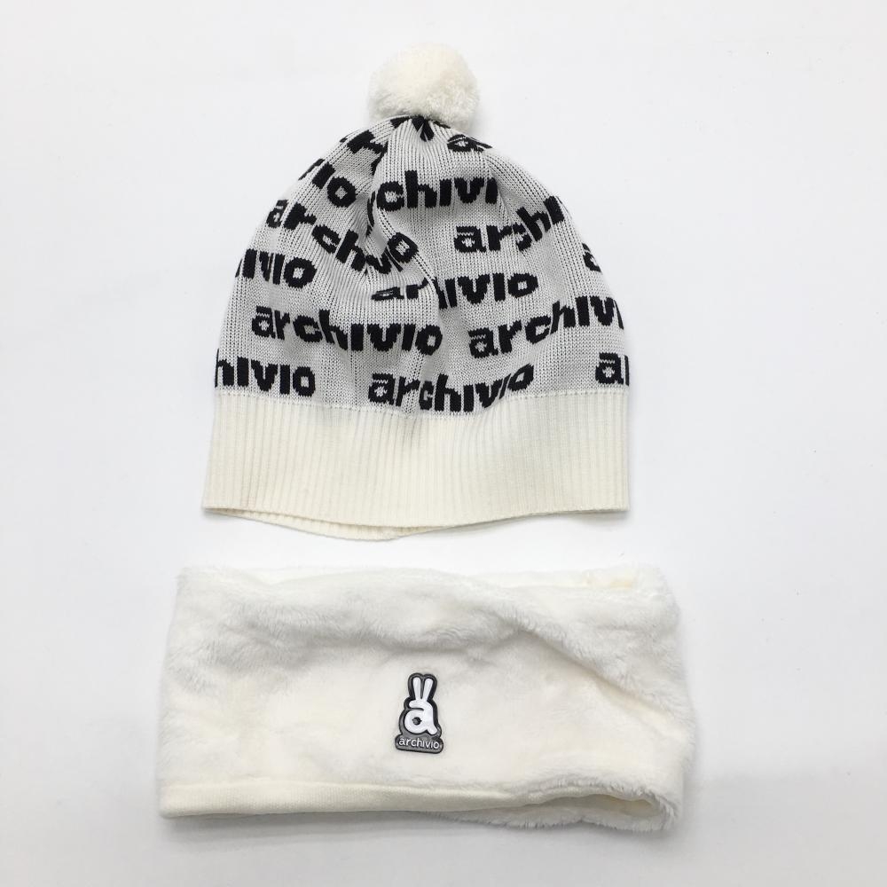 アルチビオ 2WAYニット帽 白×黒 ボンボン付 ネックウォーマー レディース ゴルフウェア archivio