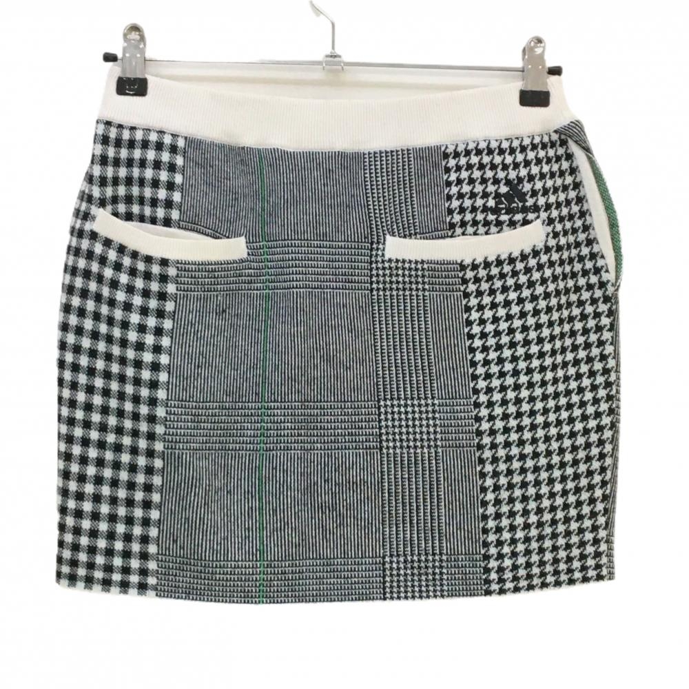 アディダス ニットスカート 白×黒 チェック 千鳥格子 レディース J/M ゴルフウェア adidas